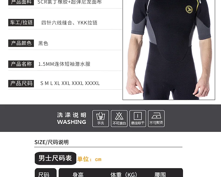 1.5MM Neoprene Wetsuit for Warm Swimming Scuba Diving Swimsuit Short Sleeve Triathlon Wetsuit for Surfing and Snorkeling