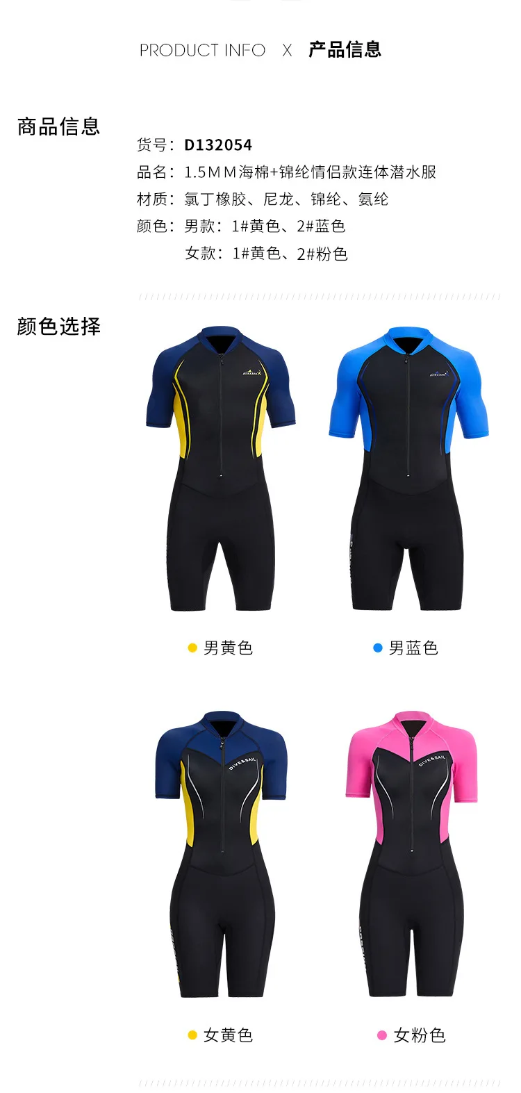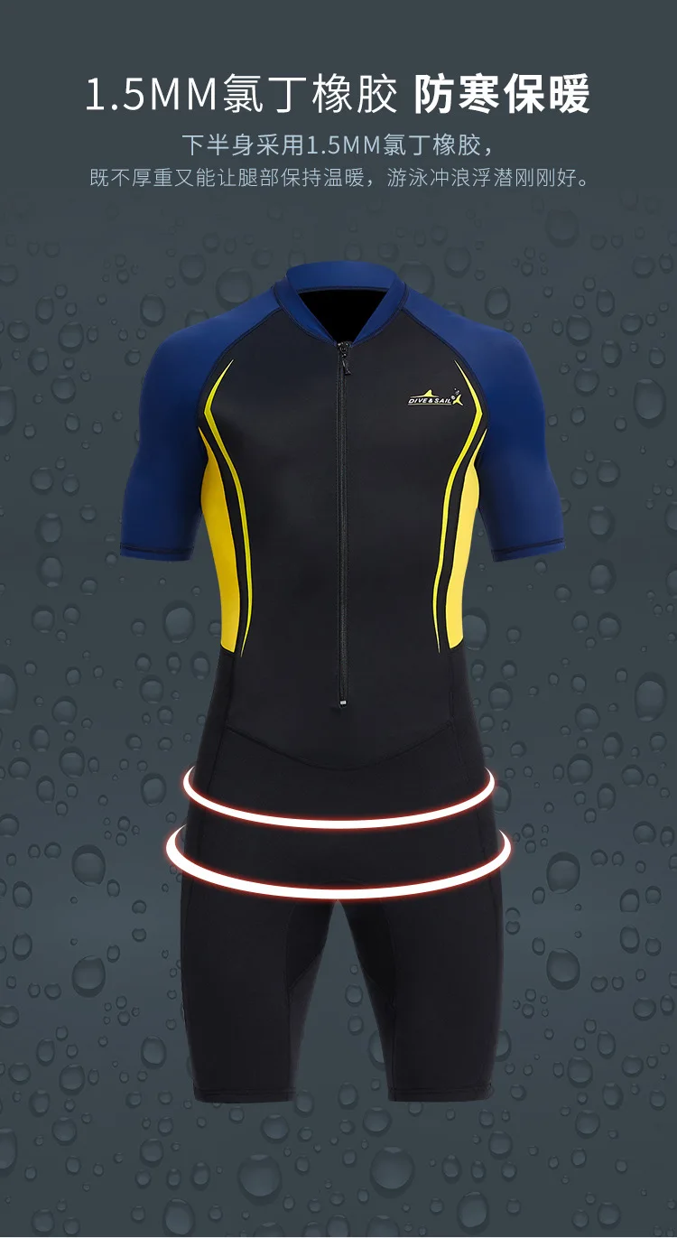 1.5MM Neoprene Wetsuit Men’s Warm Swimming Scuba Diving Swimsuit Women’s Sunscreen Surf Short-sleeved Shorts Triathlon Wetsuit