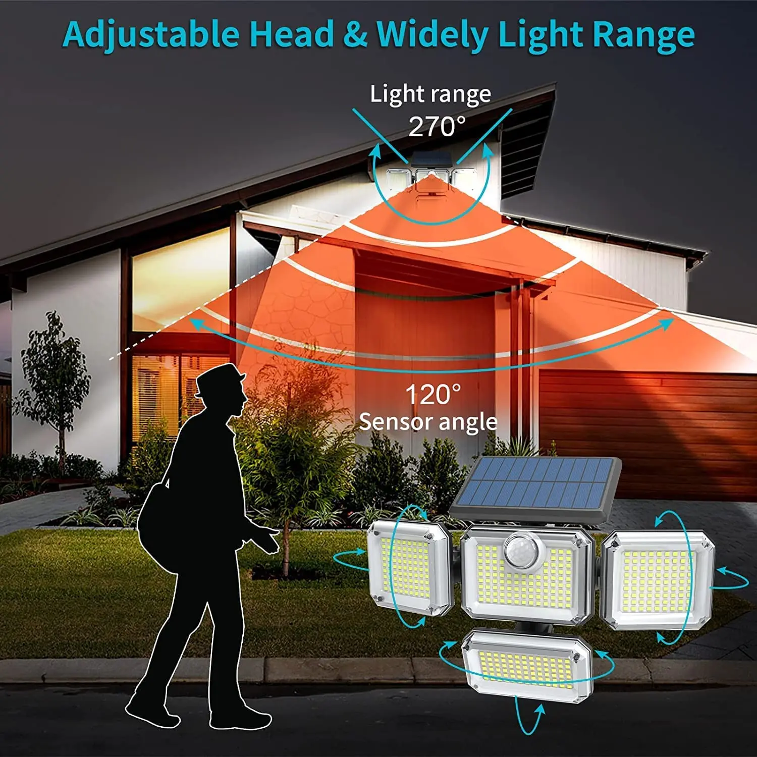 122/171/333 LED Solar Light Outdoor Motion Sensor Human Induction Adjustable head IP65 Waterproof Solar Power Security Wall Lamp