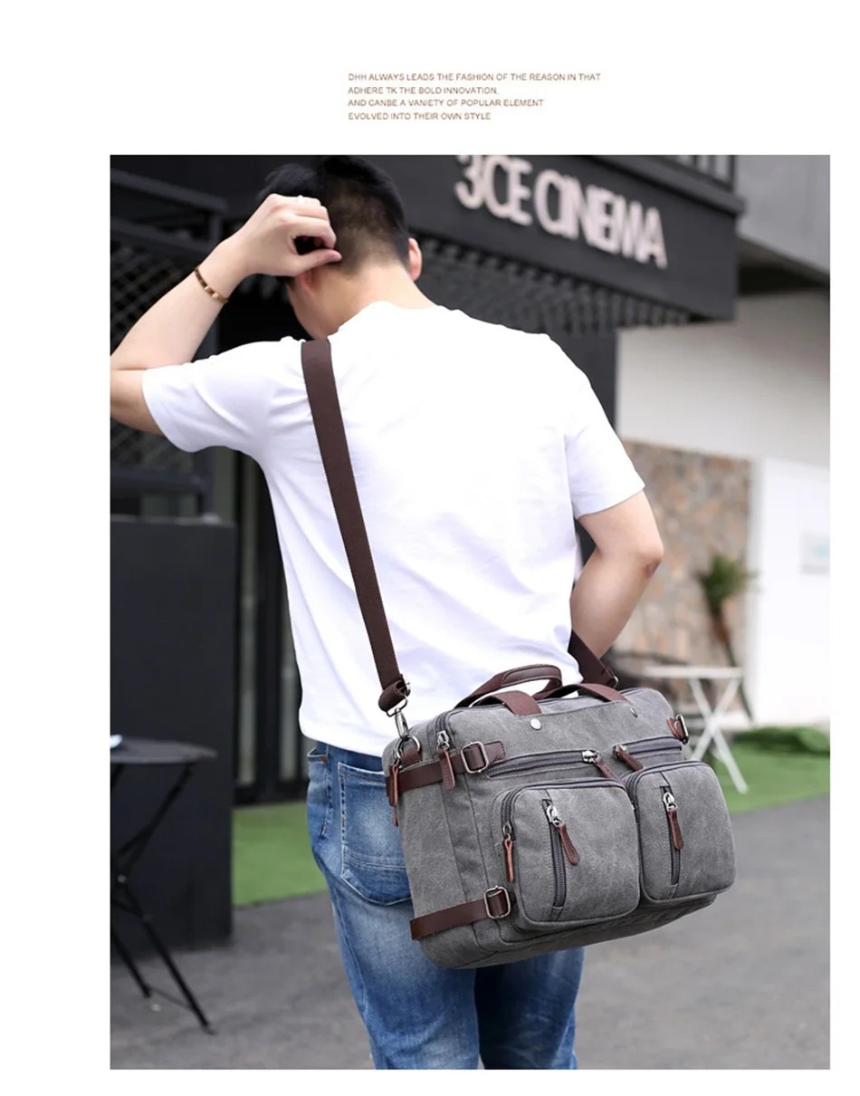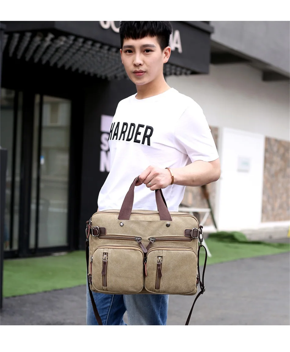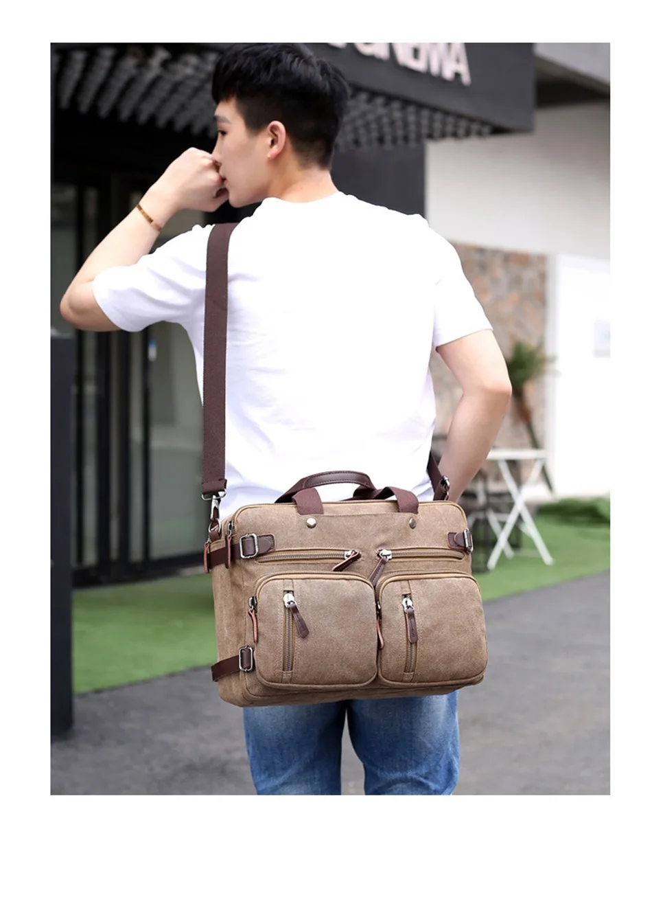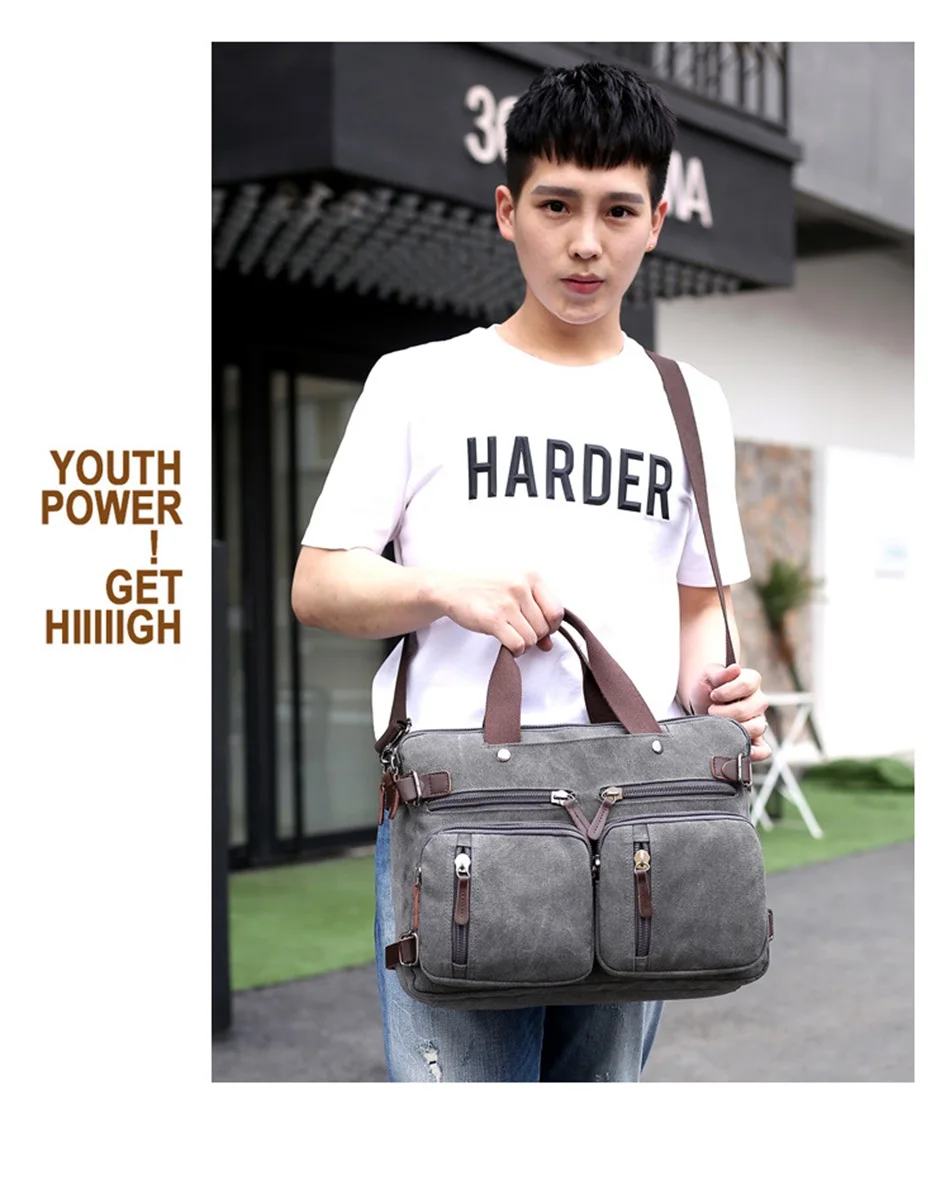 2019 New Business Portable Male Bag One Shoulder Crossbody Men’s Retro Casual Canvas Large Multi-Pocket Capacity Travel Backpack