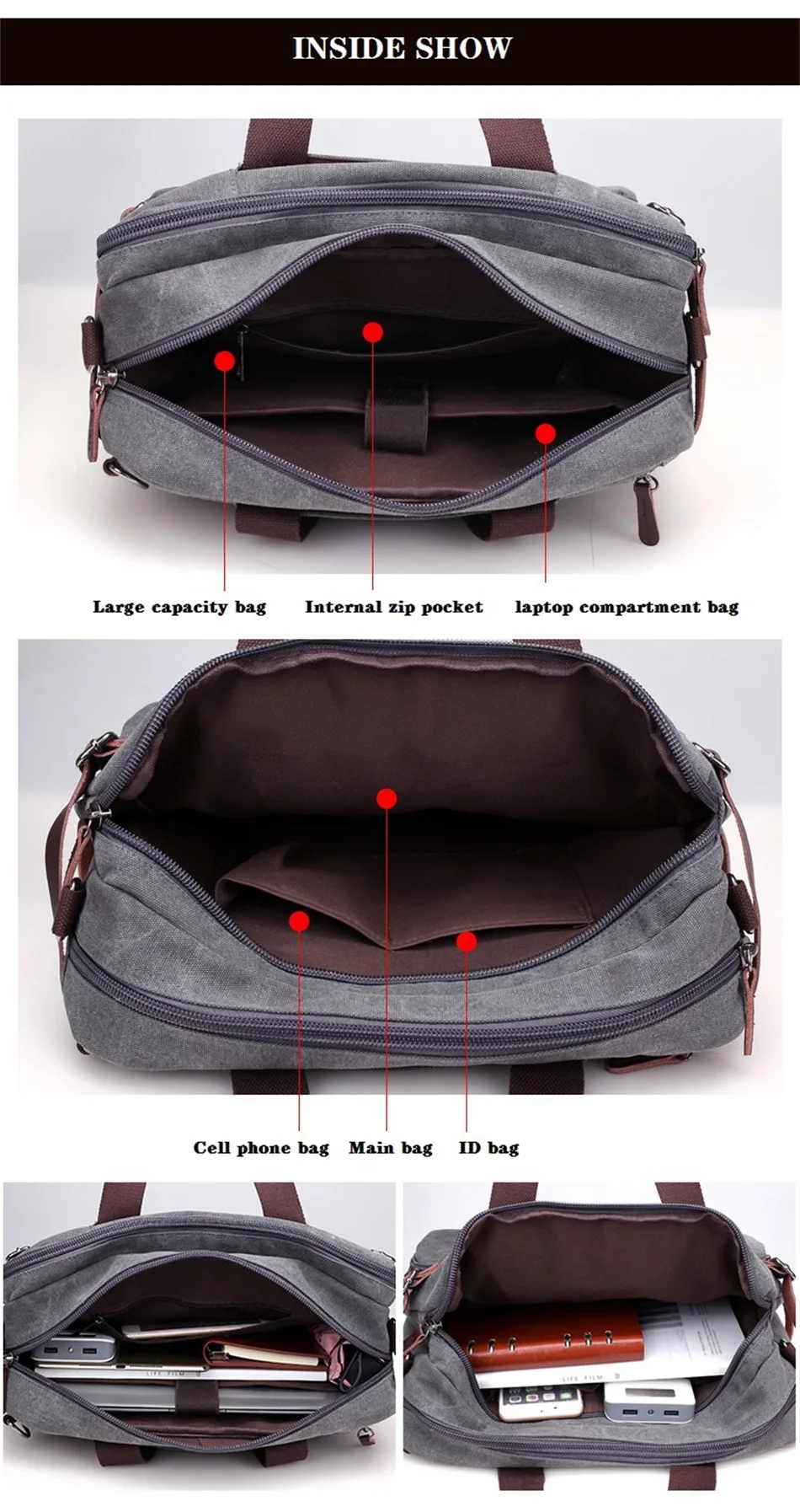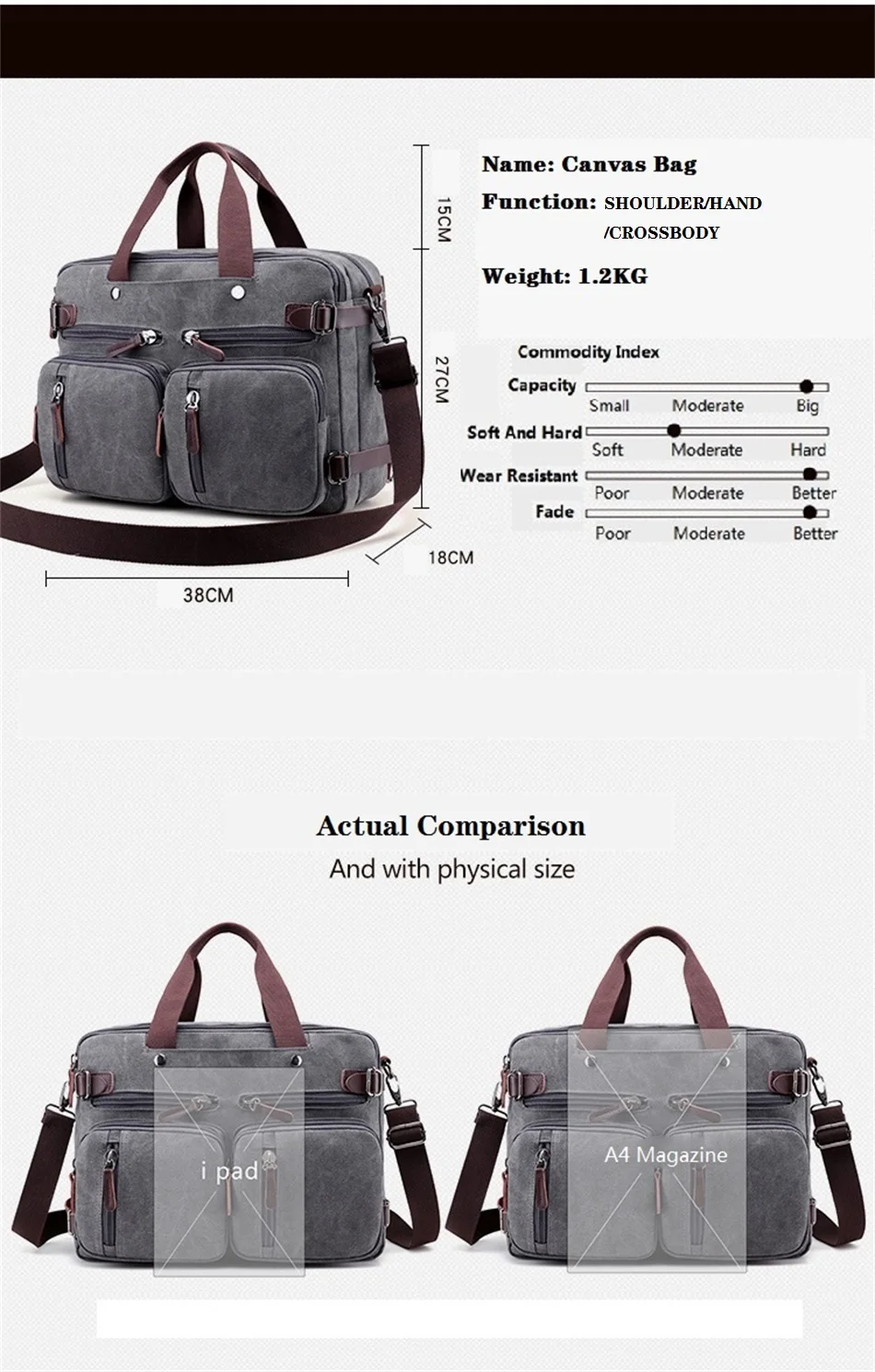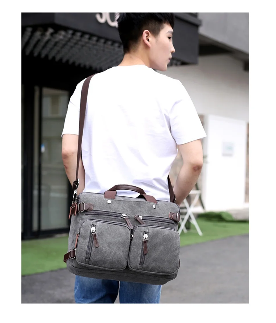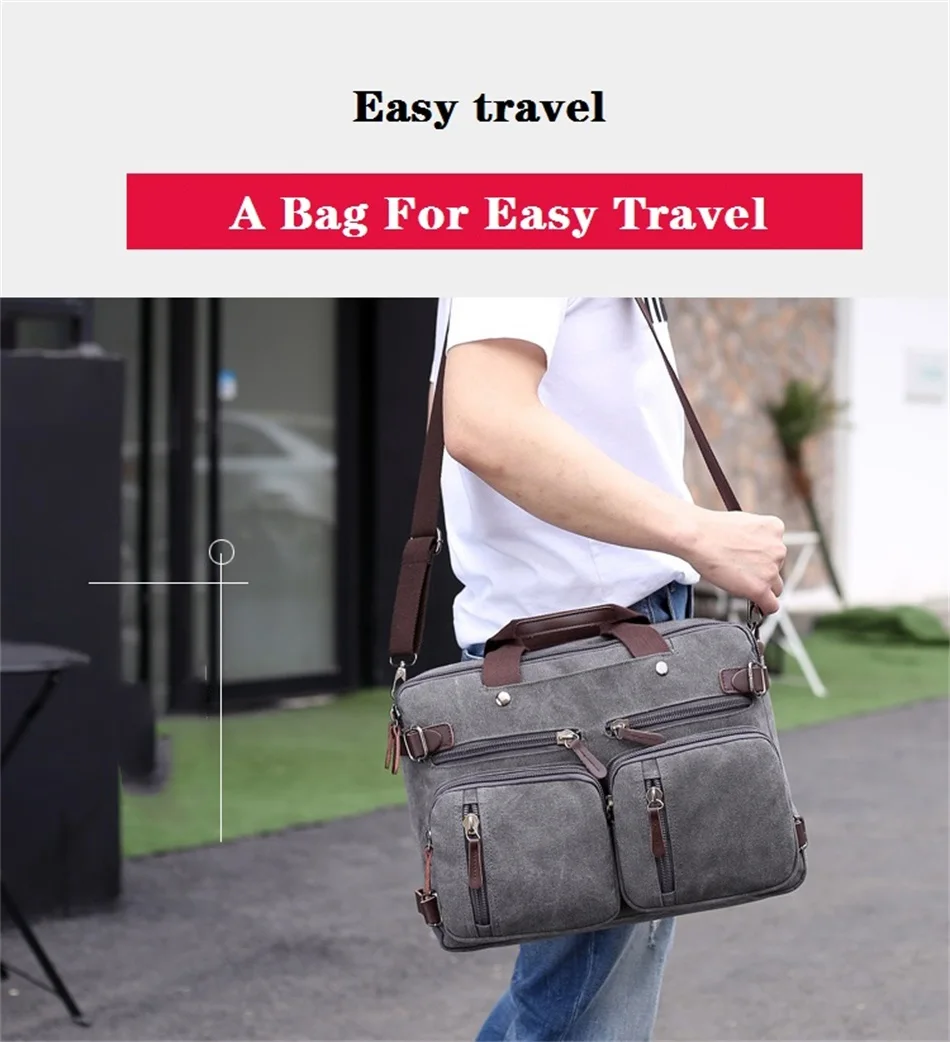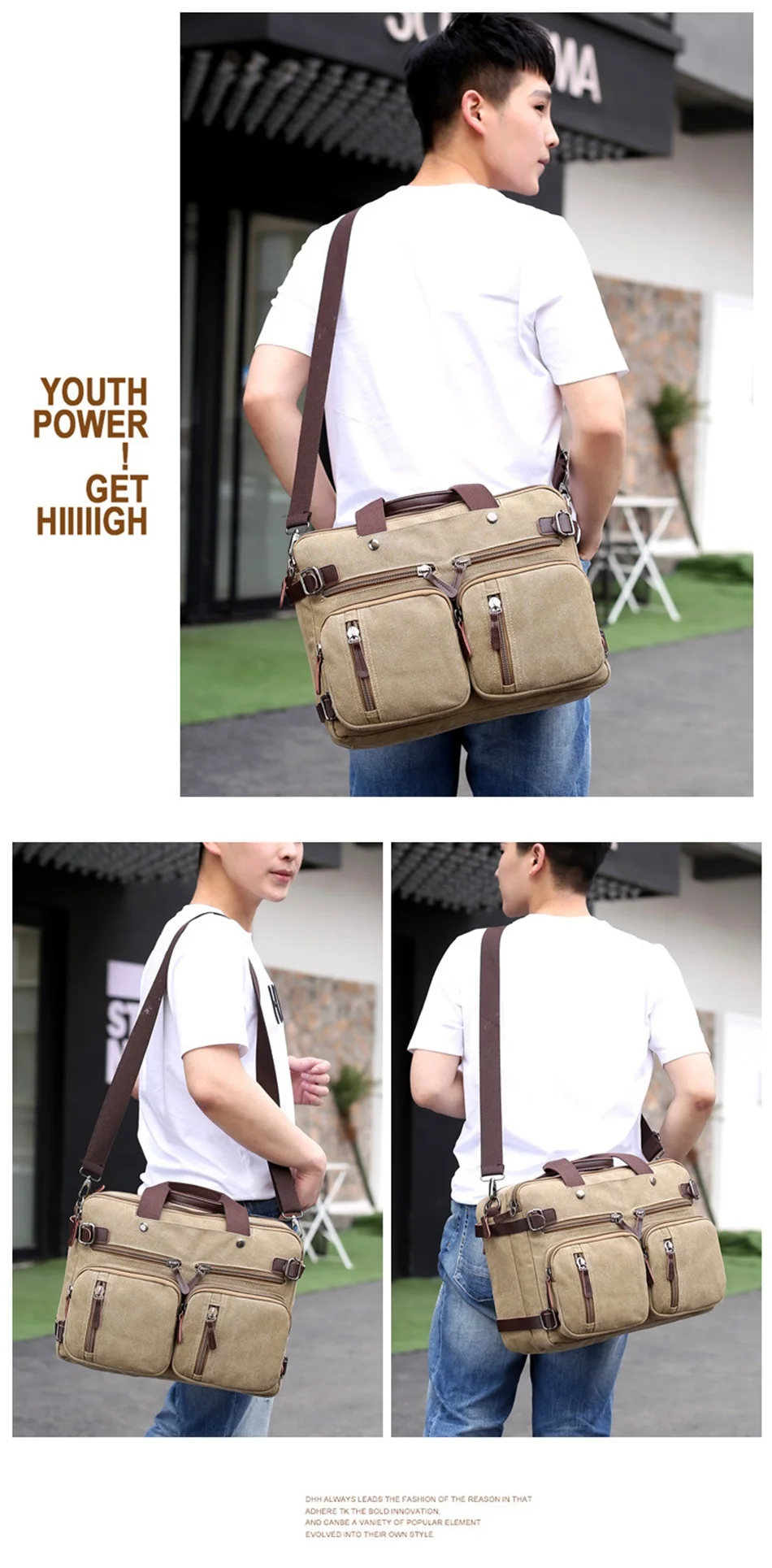 2019 New Business Portable Male Bag One Shoulder Crossbody Men’s Retro Casual Canvas Large Multi-Pocket Capacity Travel Backpack