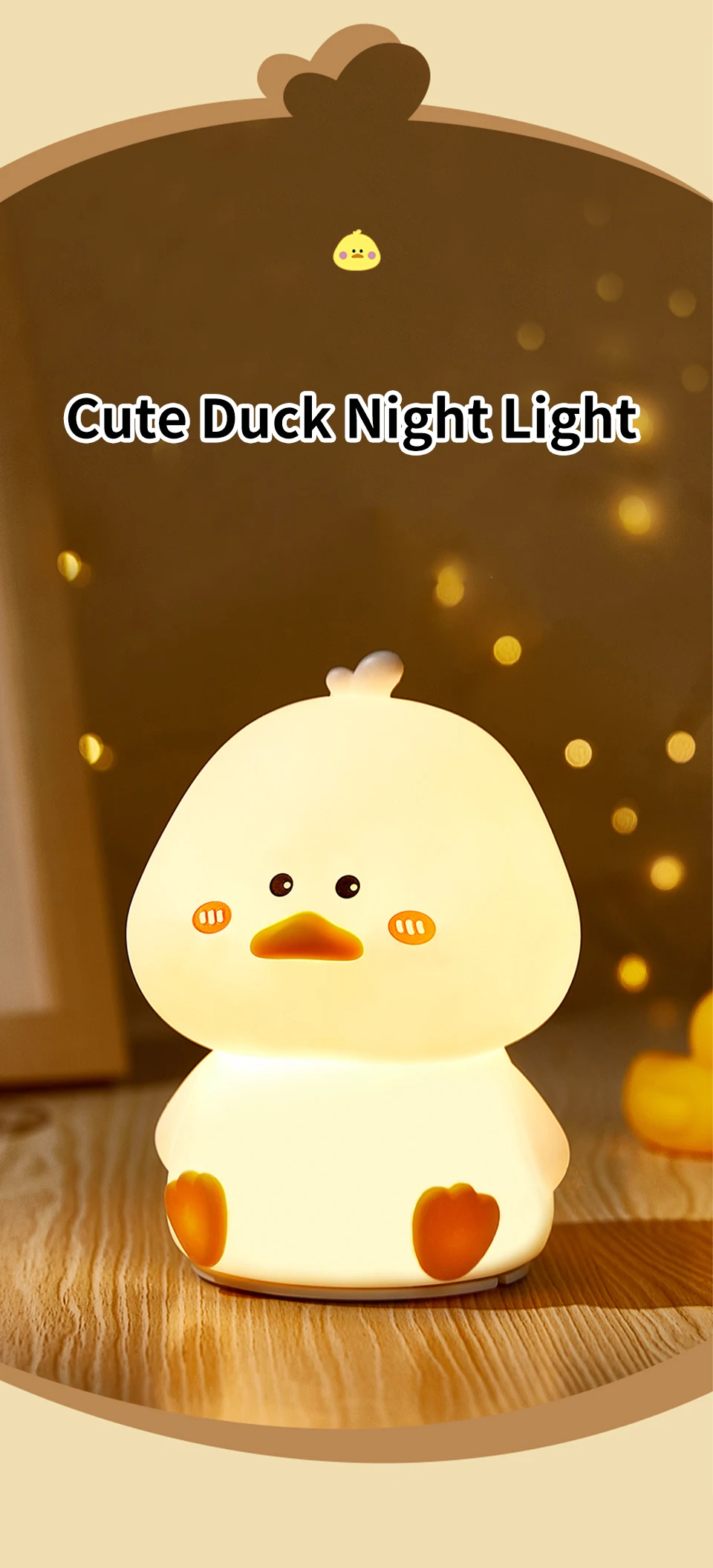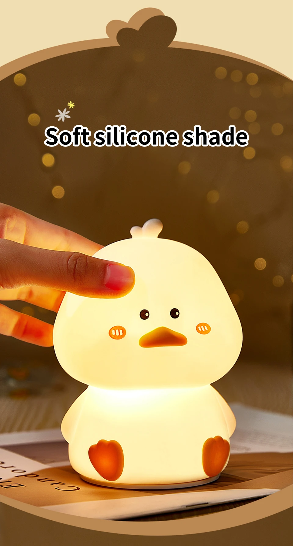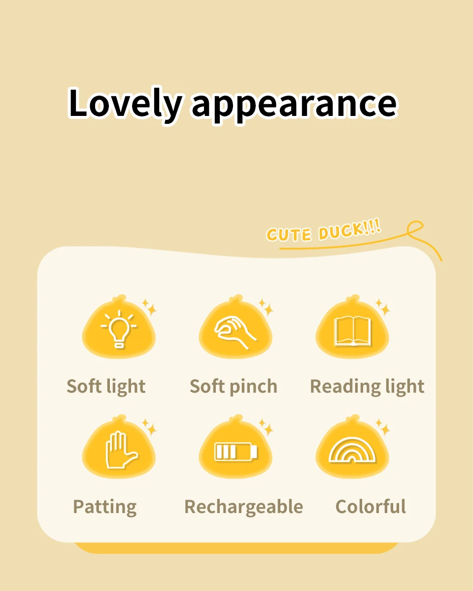 2023 Cartoon Duck Night Light Silicone Night Lamp USB Rechargeable Bedside Touch Sensor Sleeping Lamp Children Nightlights Gifts