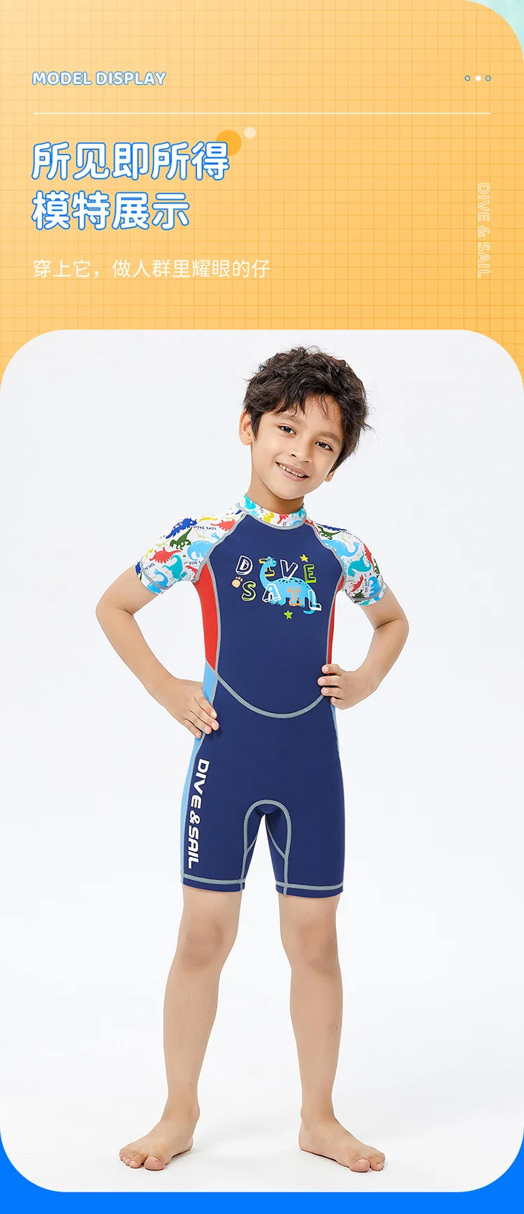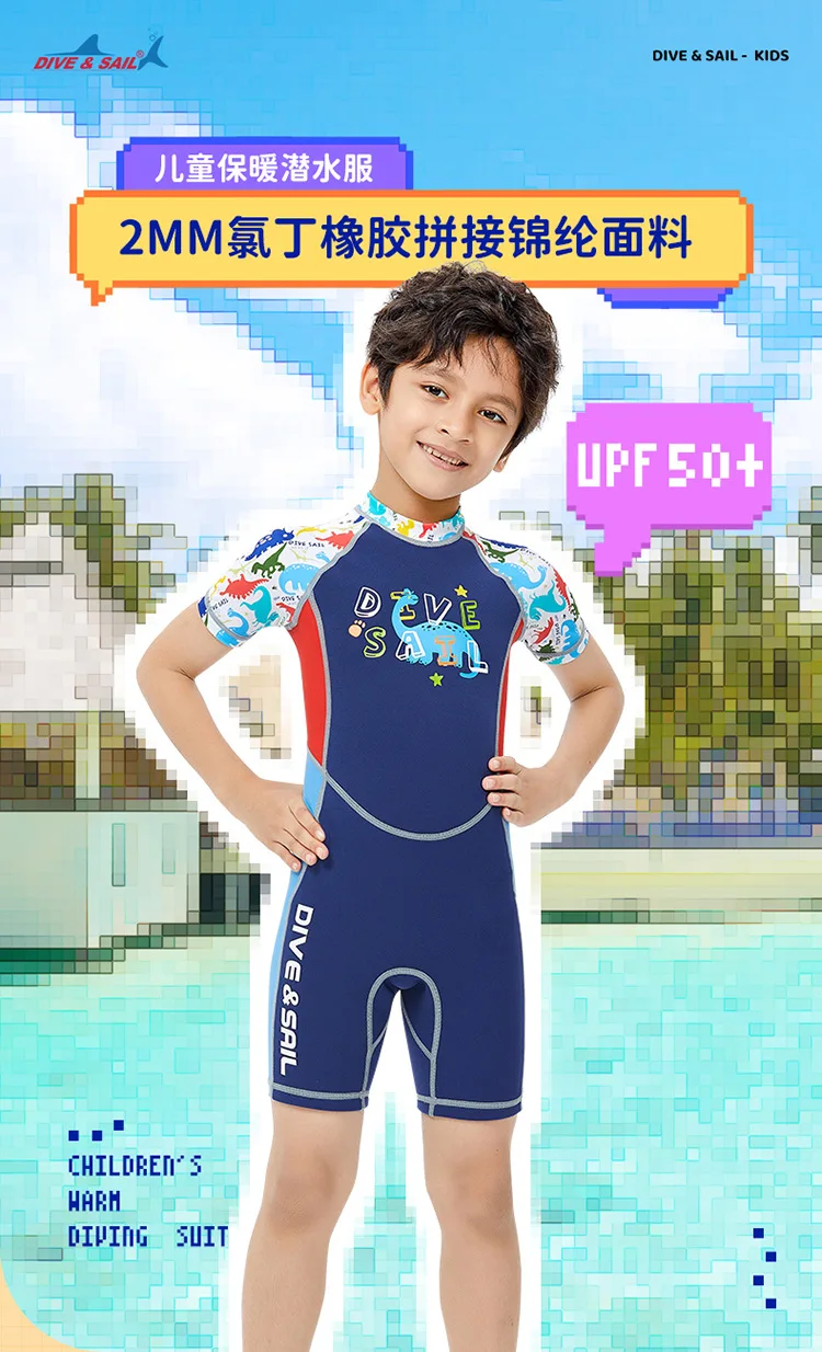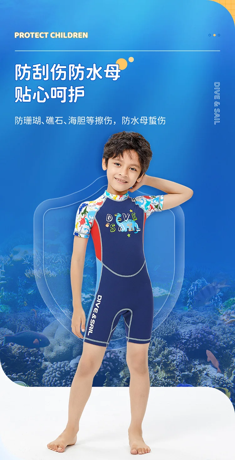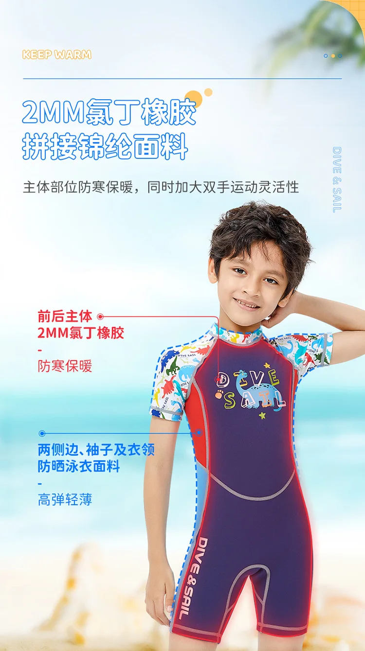 2mm Neoprene Wetsuit Children’s Warmth Sunscreen Short-sleeved One-piece Swimsuit Boy Wetsuit Girl Swimming Diving Surfing Suit