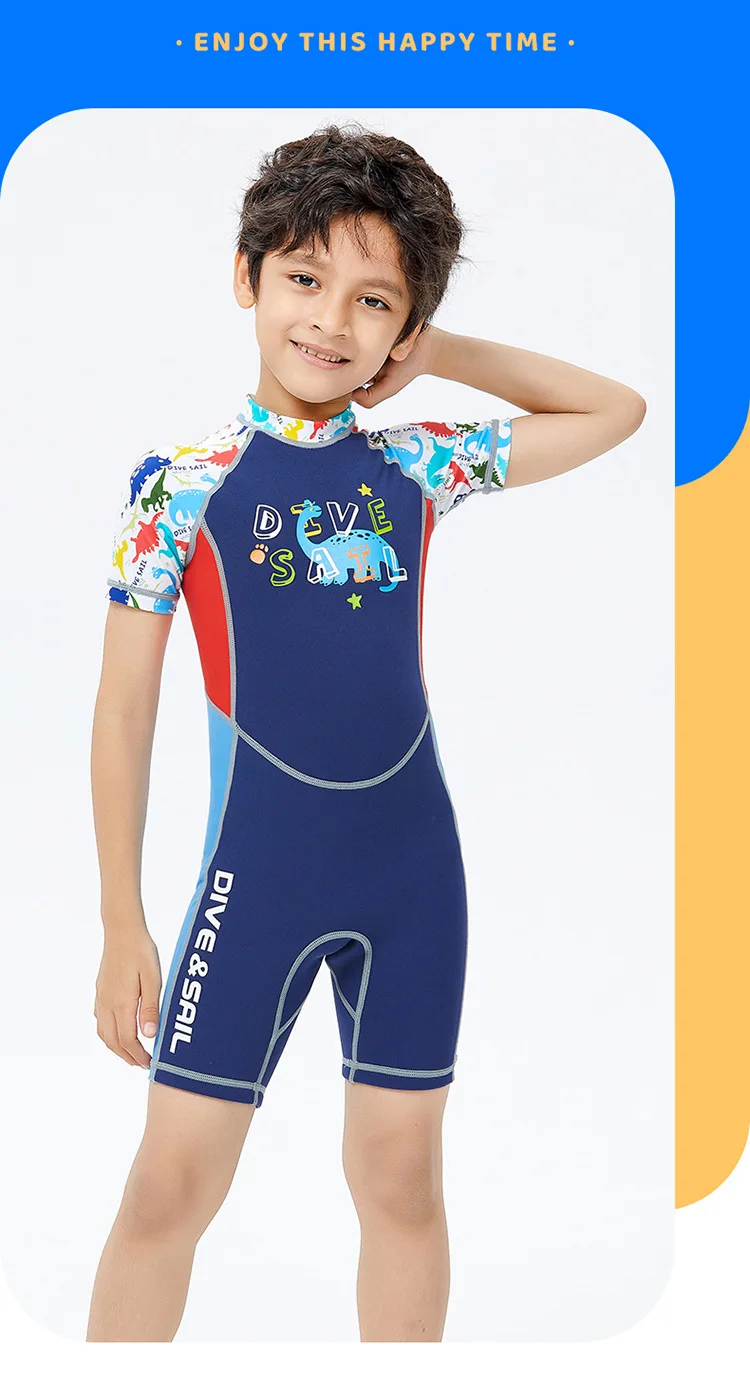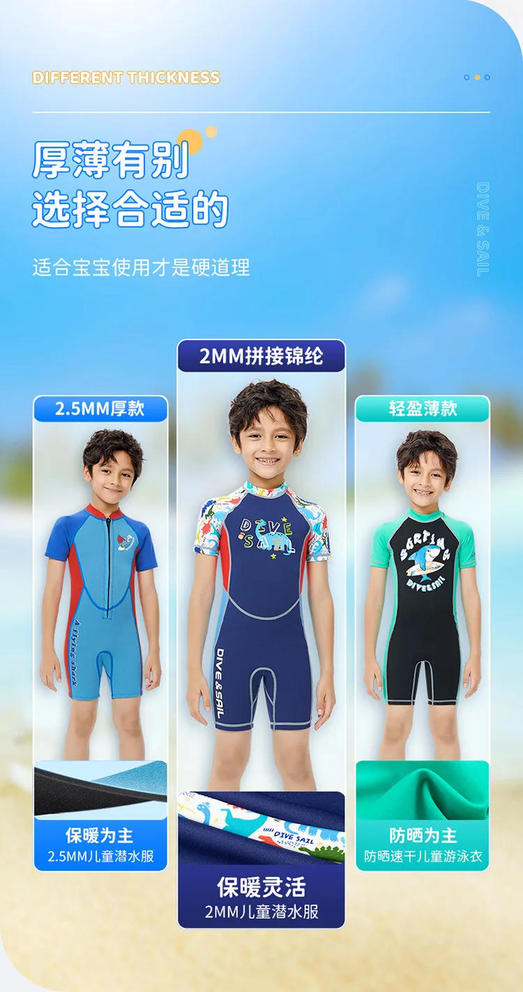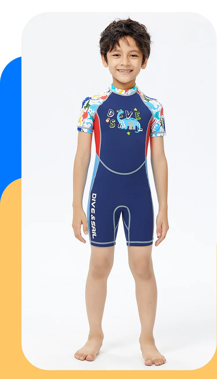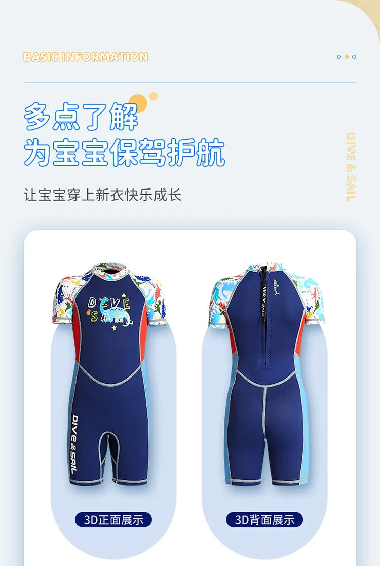 2mm Neoprene Wetsuit Children’s Warmth Sunscreen Short-sleeved One-piece Swimsuit Boy Wetsuit Girl Swimming Diving Surfing Suit