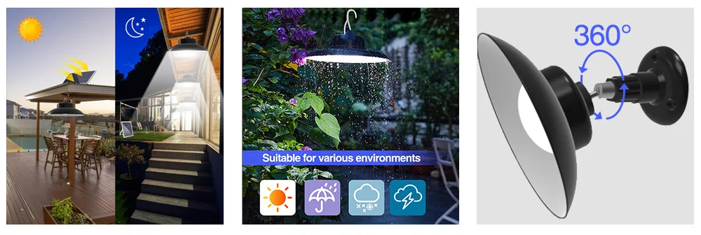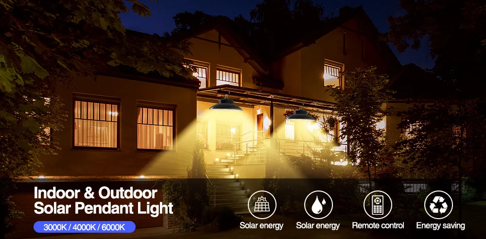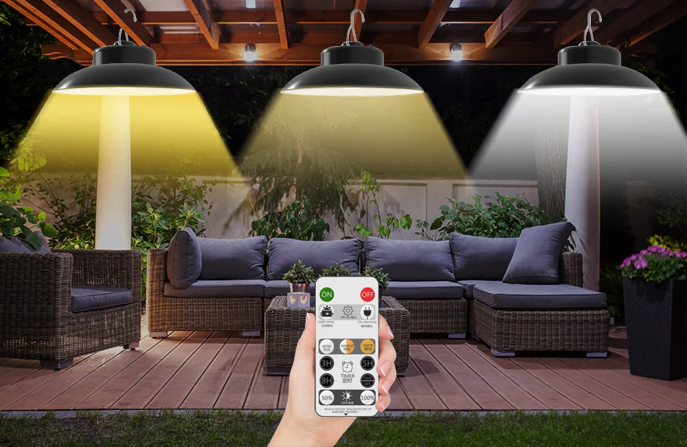 3 Colors Solar Pendant Light Outdoor Remote Waterproof Garden Hanging Chandelier IP66 Waterproof for Patio Garage Balcony Porch
