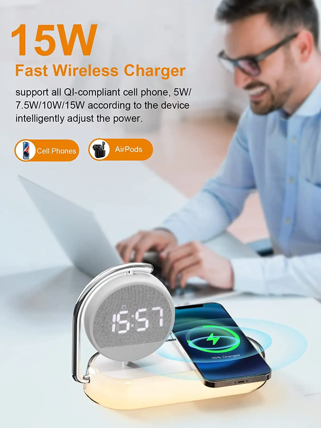 3 in 1 15W Fast Charger Night Light Wireless Charging Station with Digital Alarm Clock for Bedroom Bedside Decor led Night Lamps