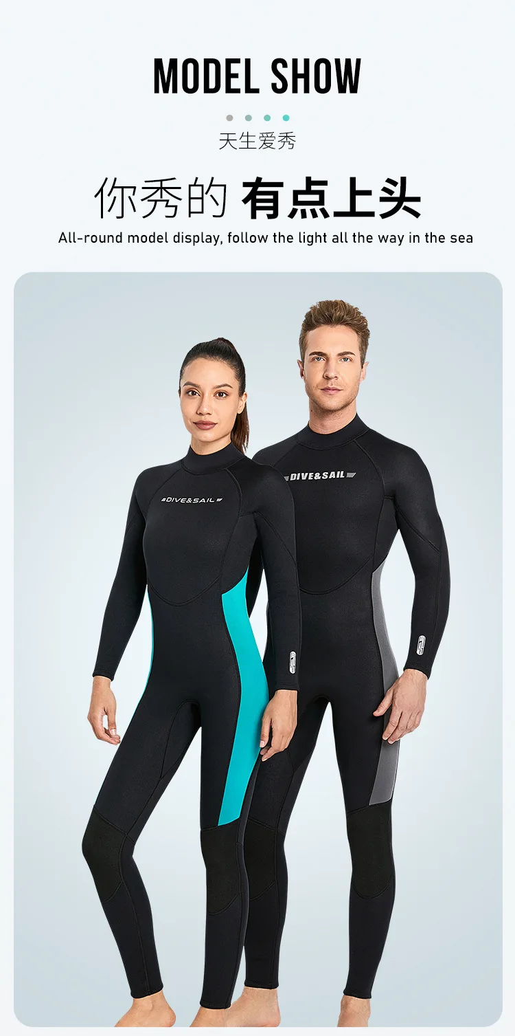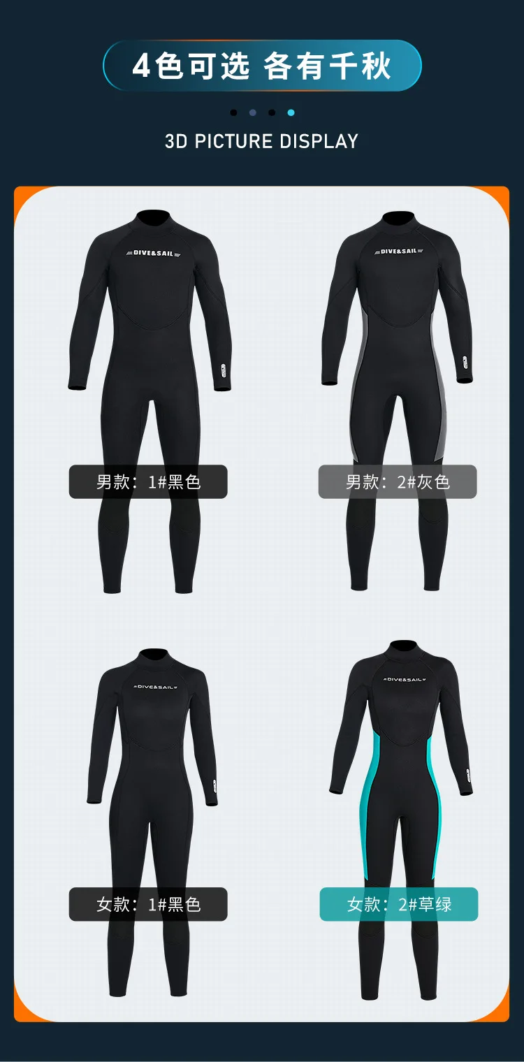 3MM Neoprene Men Wetsuit Long Sleeve One-piece Diving Suit Plus Size Scuba Diving Snorkeling Surfing Warm Swimsuit Women Wetsuit