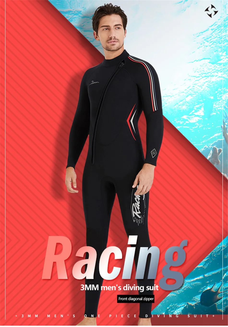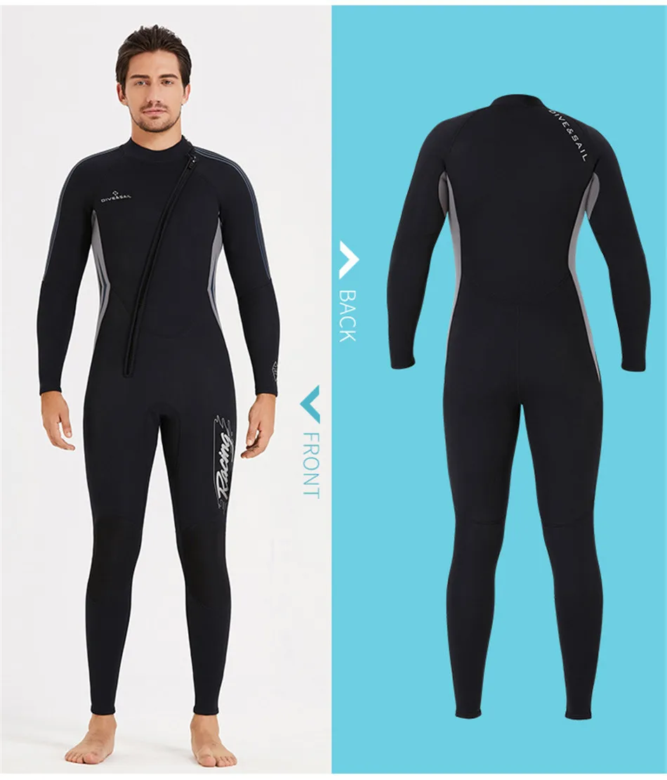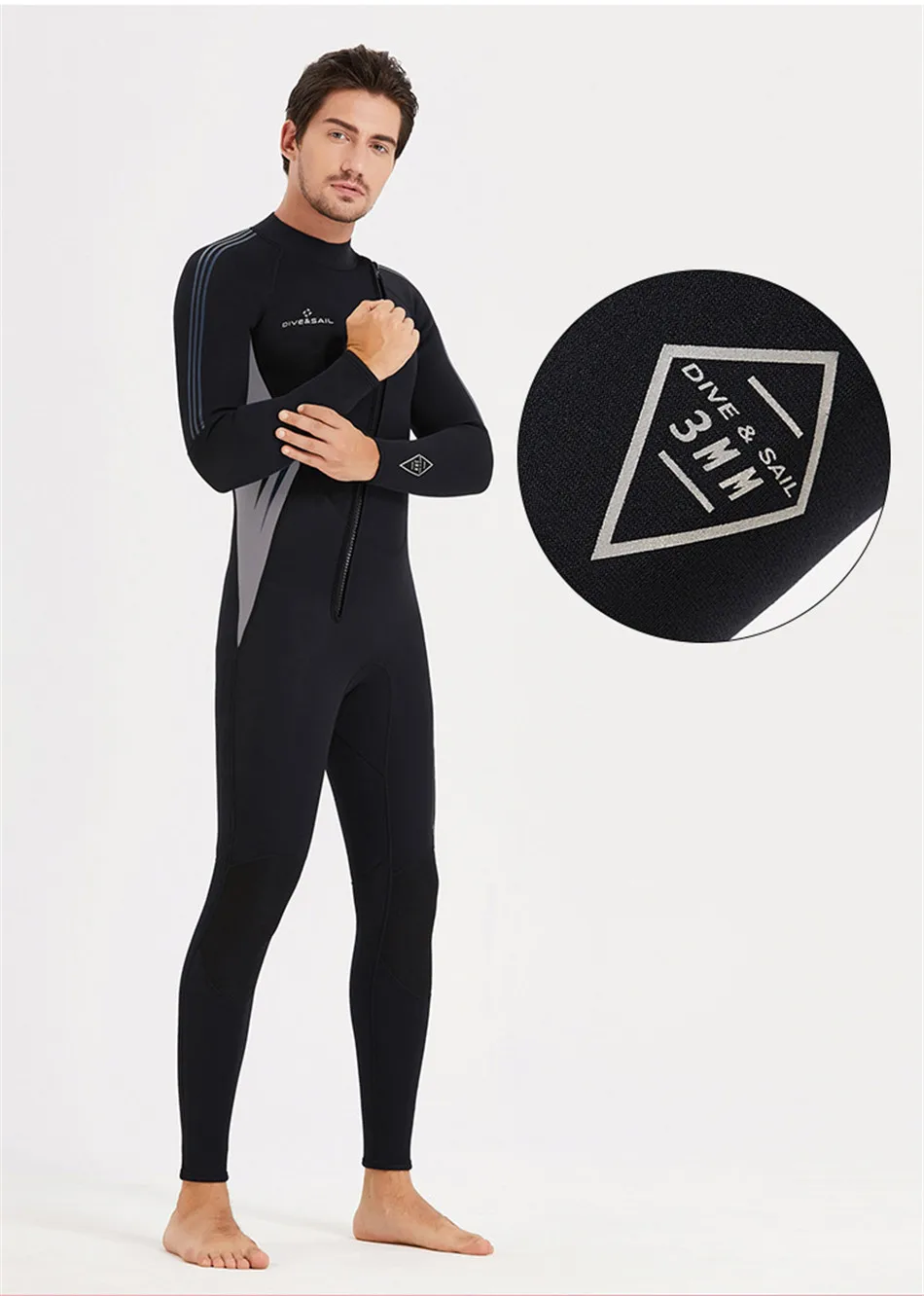 3MM Neoprene Men’s One-Piece Long-Sleeved Wetsuit Outdoor Winter Thick Warm Wetsuit Water Surfing Sailing Snorkeling Swimsuit