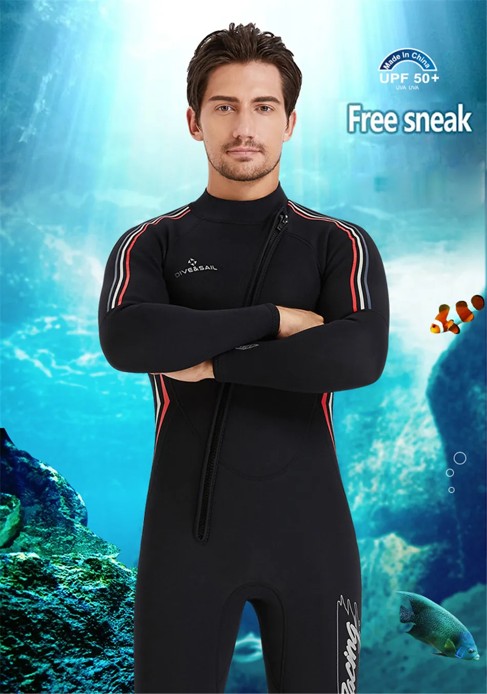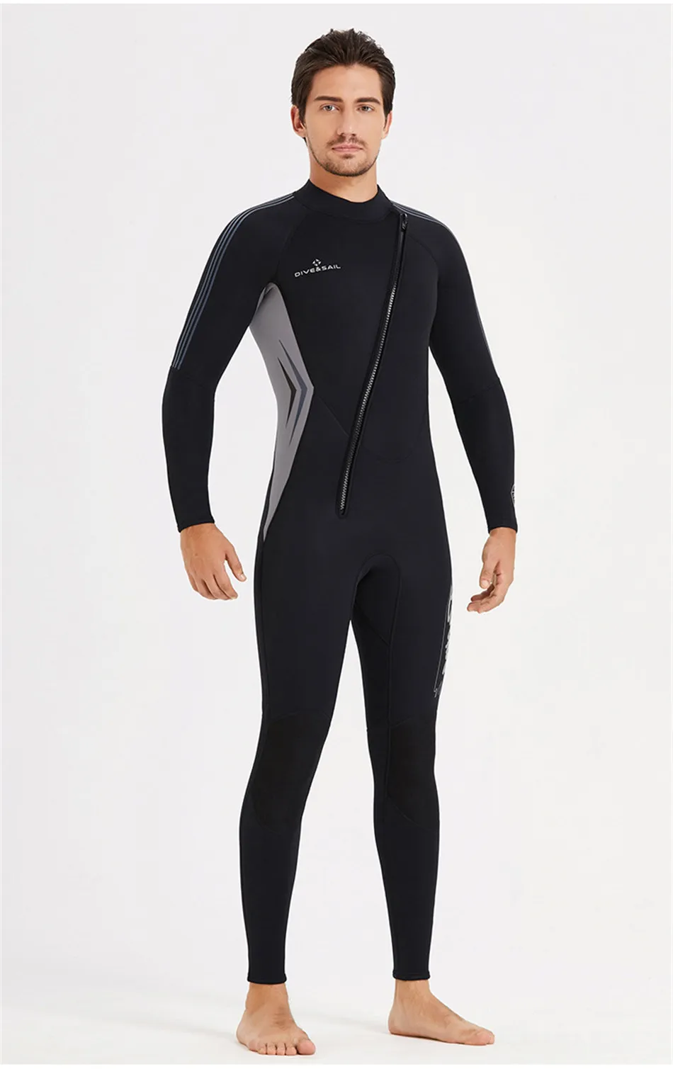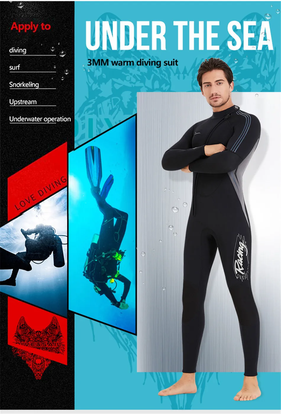 3MM Neoprene Men’s One-Piece Long-Sleeved Wetsuit Outdoor Winter Thick Warm Wetsuit Water Surfing Sailing Snorkeling Swimsuit