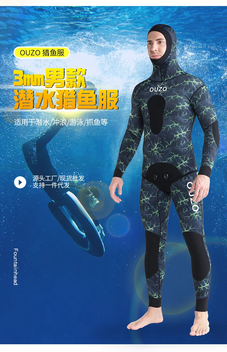 3MM Neoprene Wetsuit Men Hooded Diving Suit Scuba Diving Snorkeling Wetsuit Equipment Swim Surfing SpearFishing Women Wet Suit