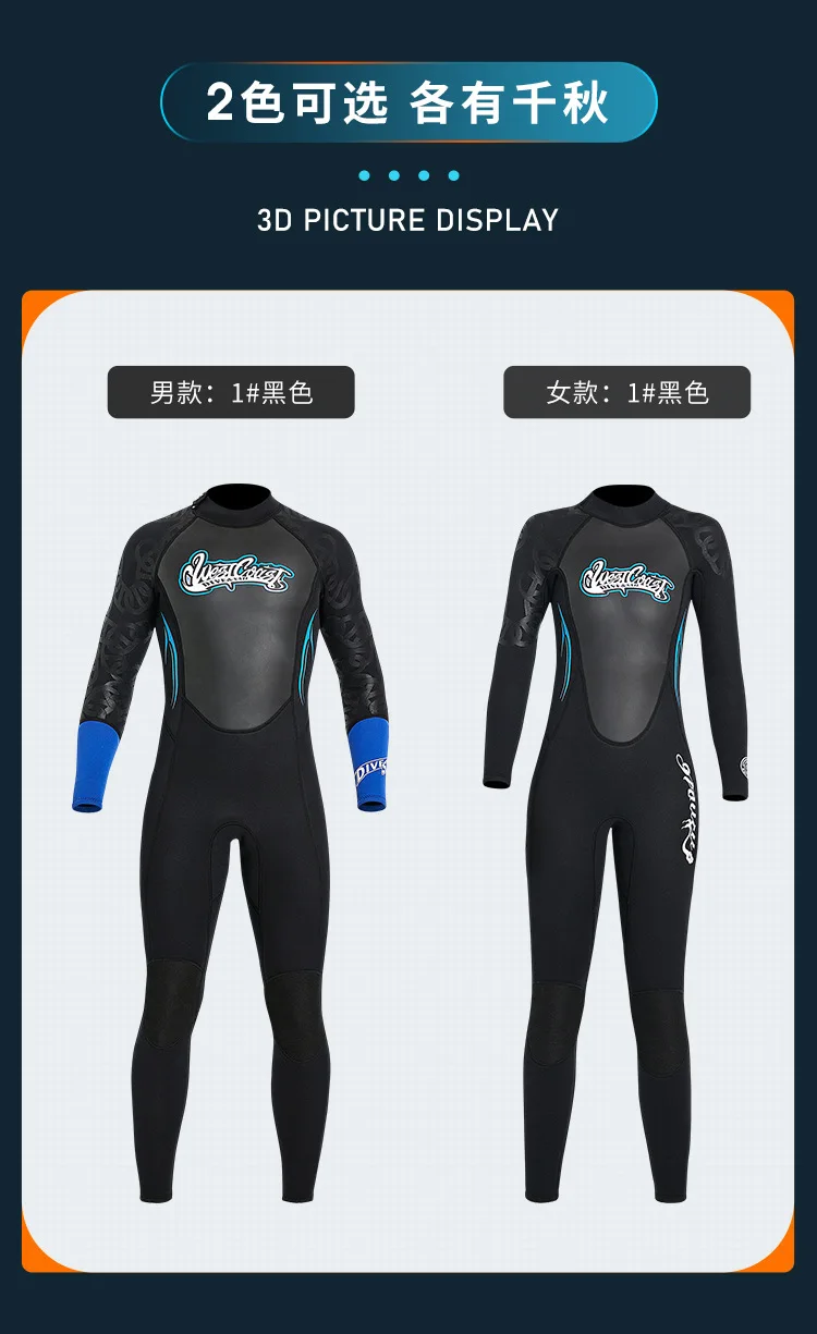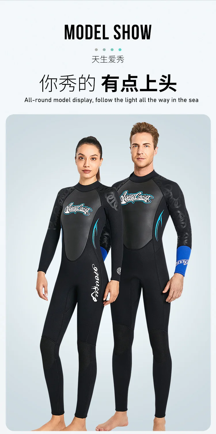 3MM Neoprene Wetsuit Men One-piece Surfing Diving Suit Long-sleeve Warm Women Full Body Swimsuit Scuba Diving Snorkeling Wetsuit