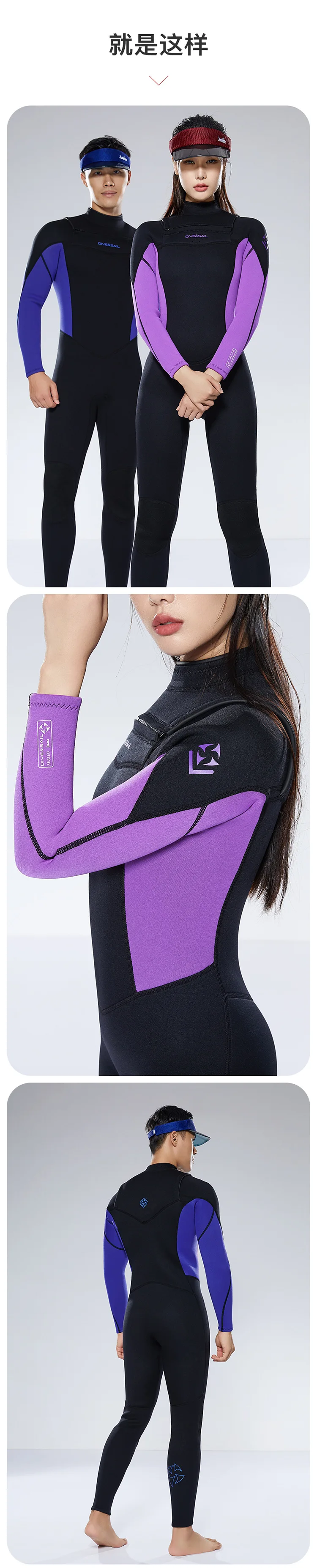 3mm Neoprene Wetsuit Men Scuba Diving and Snorkeling Wetsuits Women Surf Swim Full Body Chest Horizontal Zipper Diving Suit