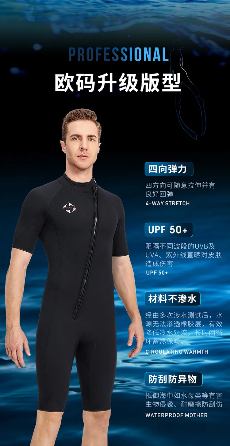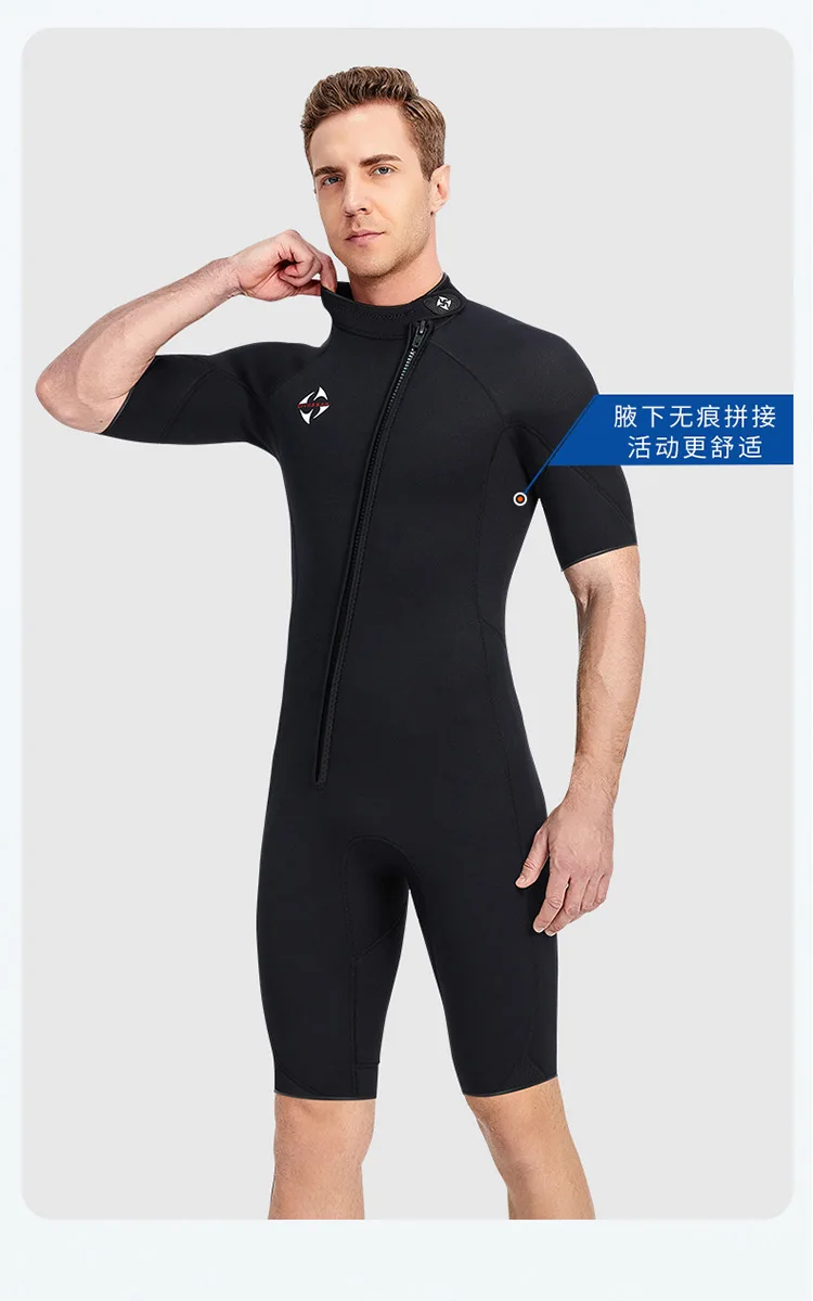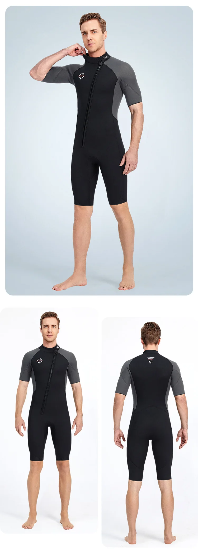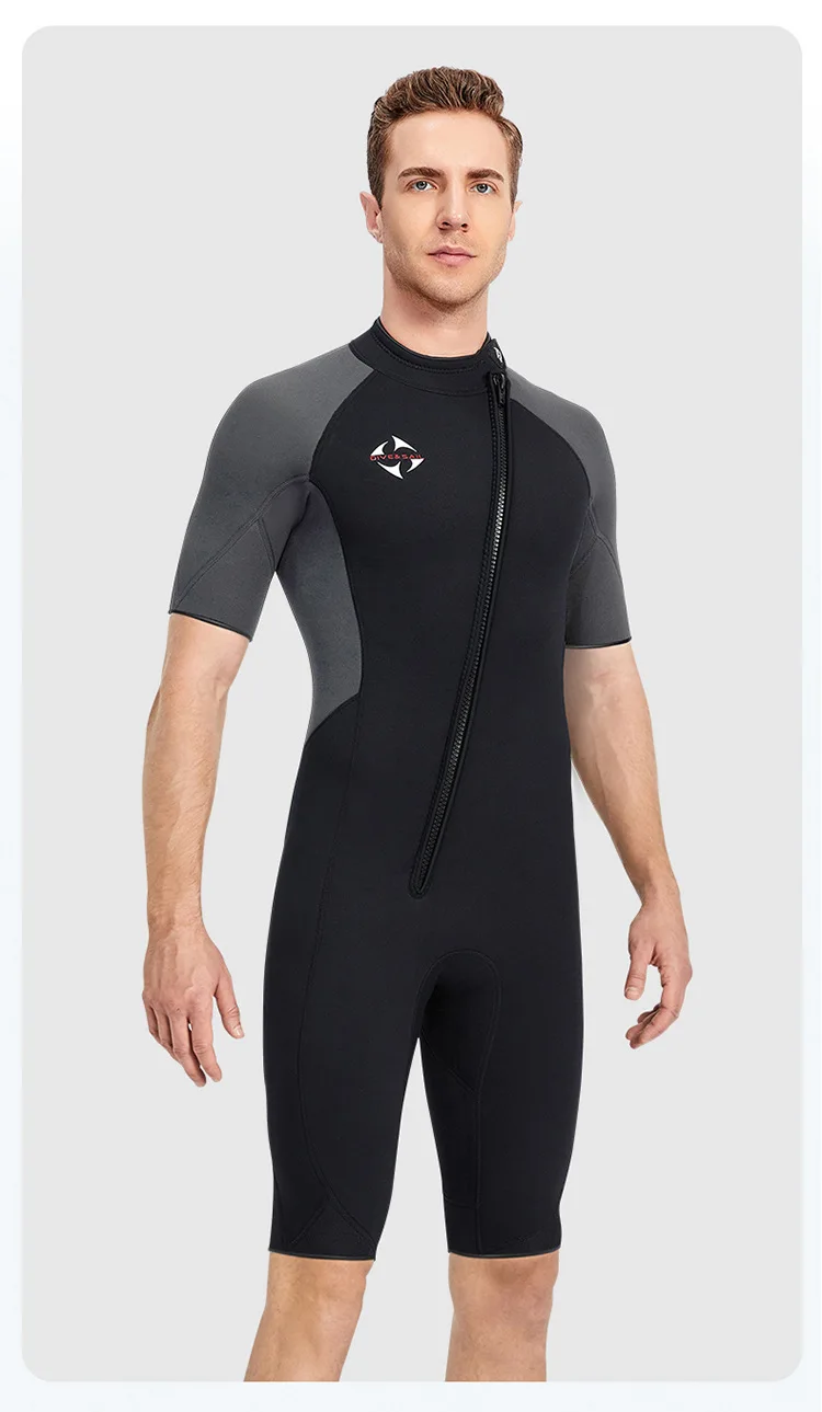 3mm Wetsuit Men Neoprene One Piece Short Sleeve Wetsuit Surf Suit Scuba Diving Snorkeling Suit Swimsuit Water Sportswear