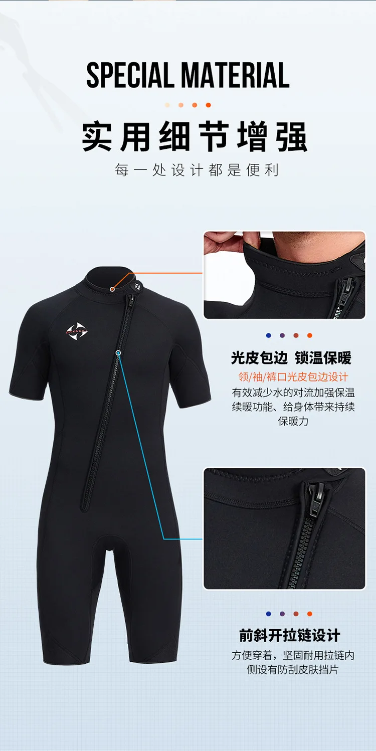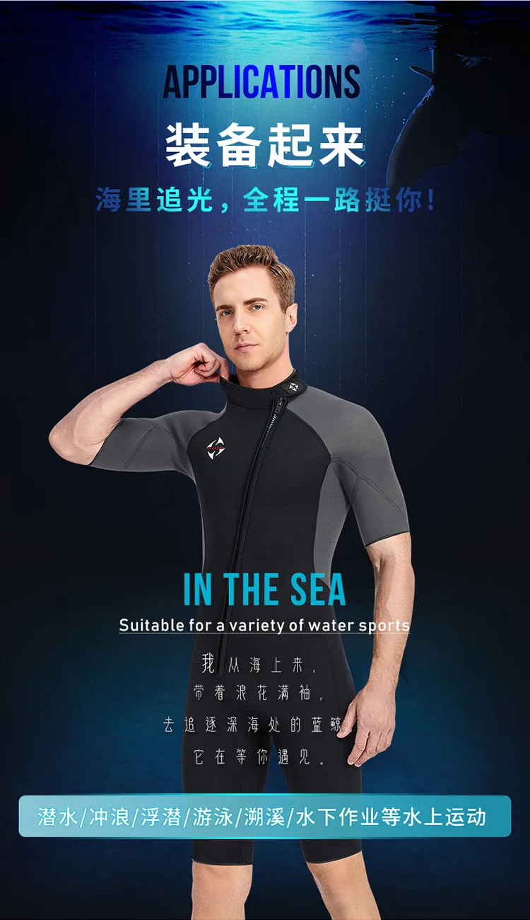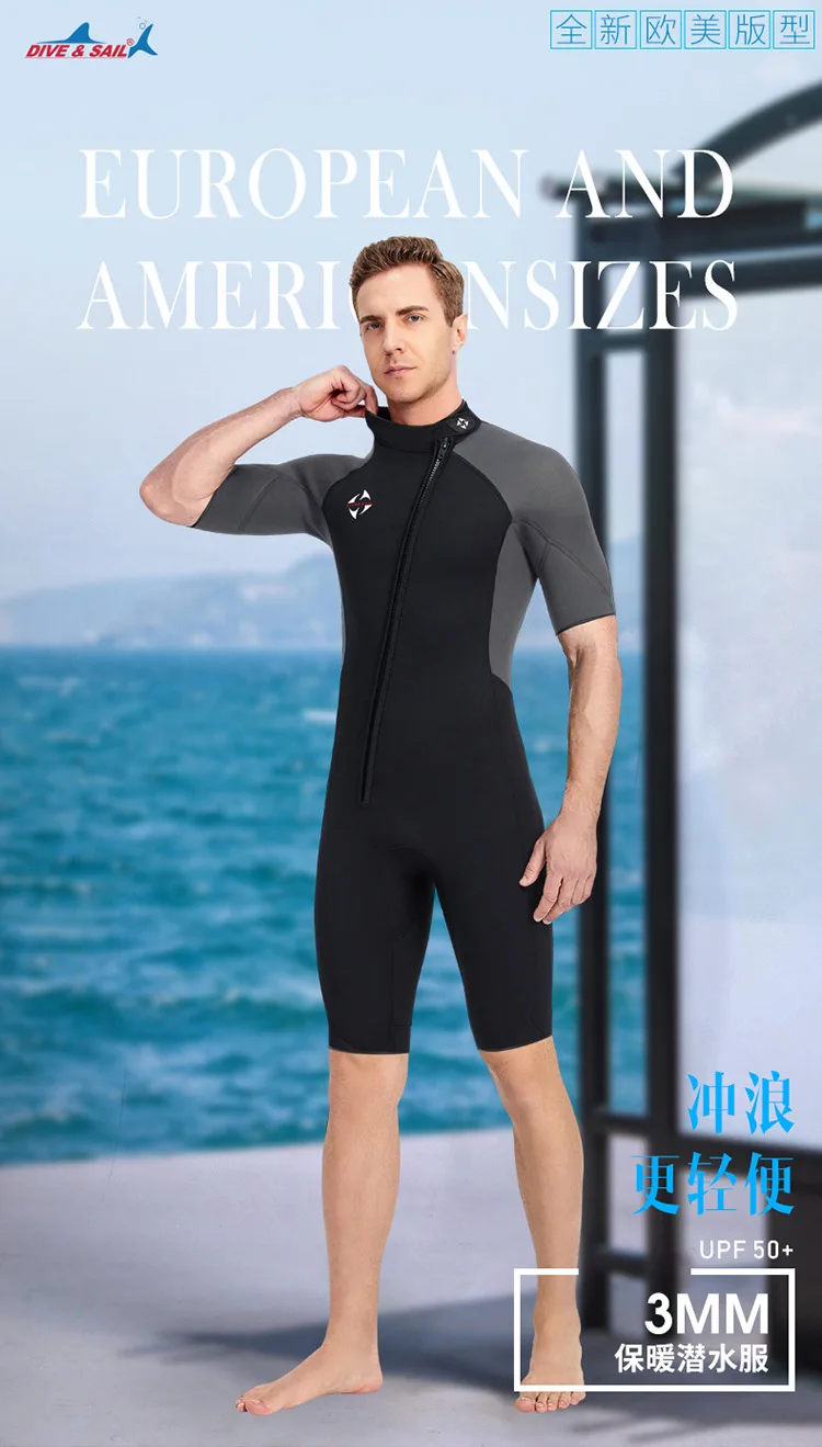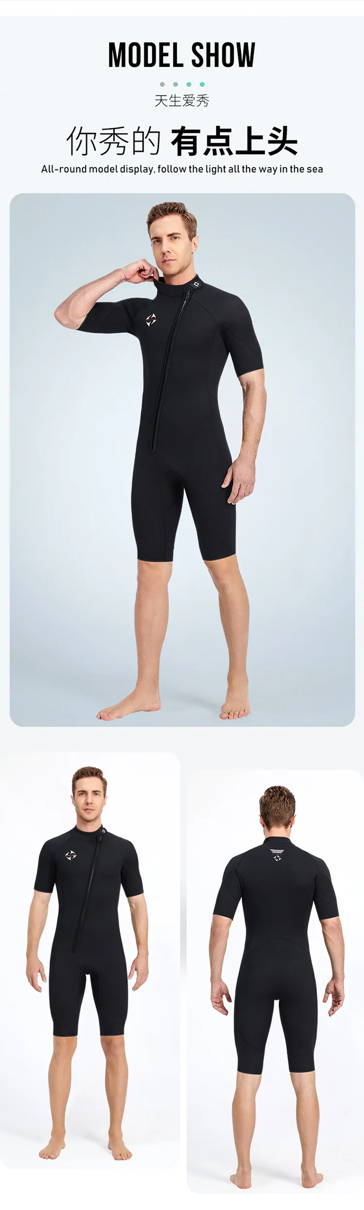 3mm Wetsuit Men Neoprene One Piece Short Sleeve Wetsuit Surf Suit Scuba Diving Snorkeling Suit Swimsuit Water Sportswear