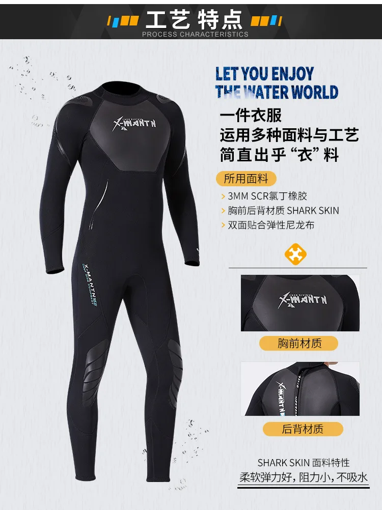 3mm Wetsuit Premium Neoprene Men One-piece Long-sleeved Warm Wetsuit Women Surfing Scuba Diving Snorkeling Swimsuit Diving Suit