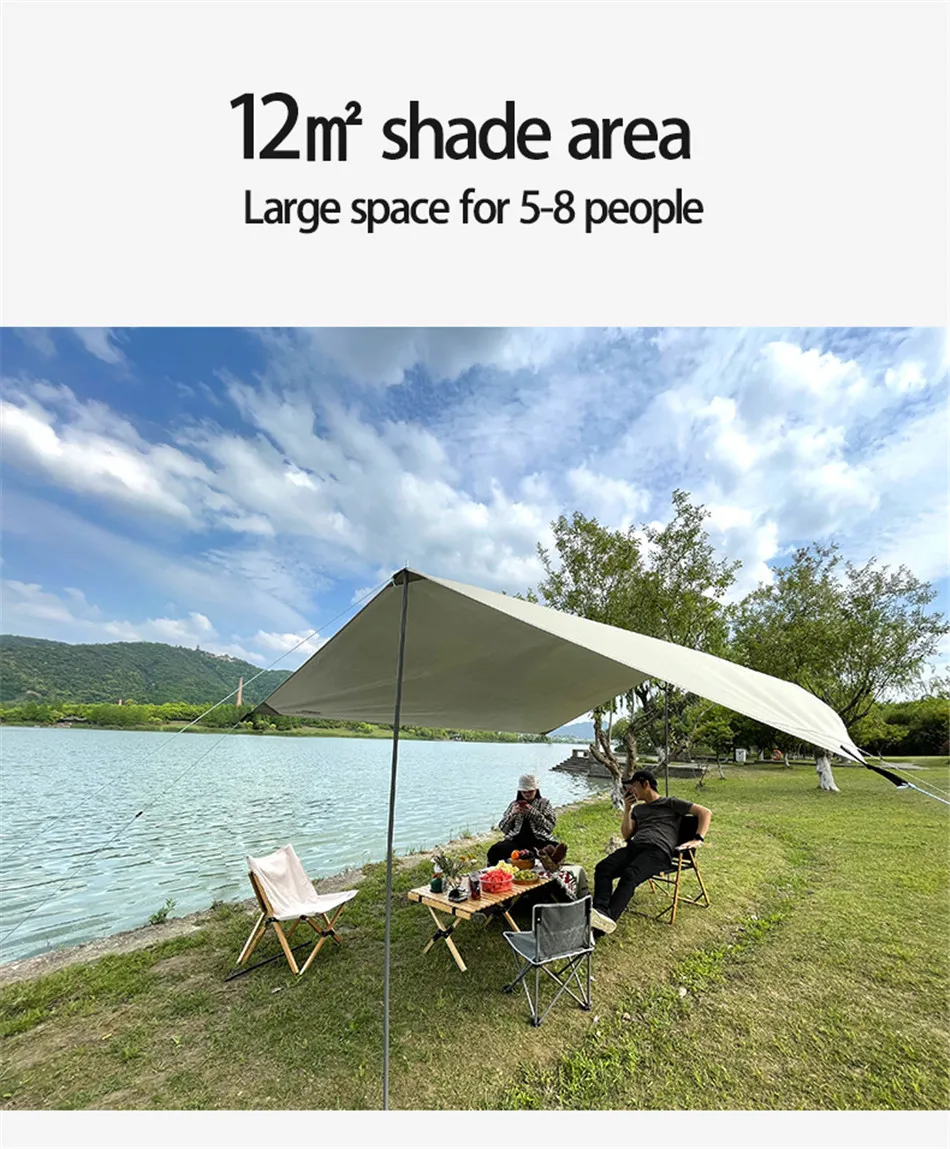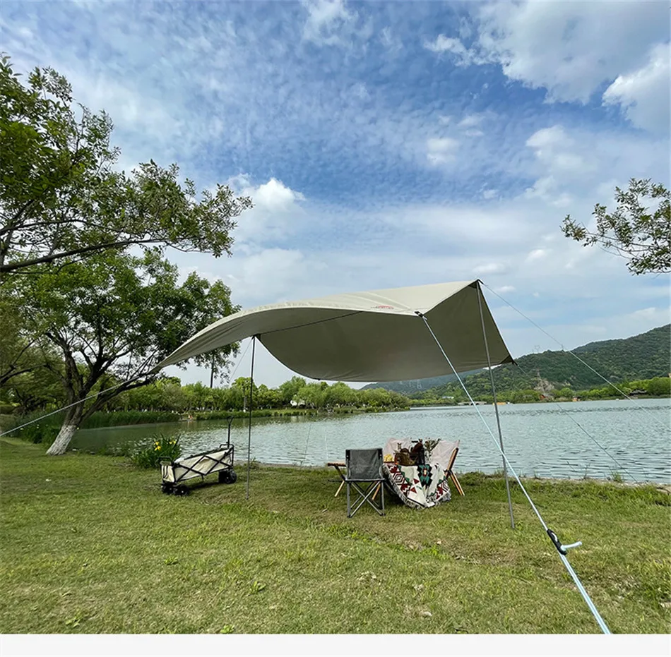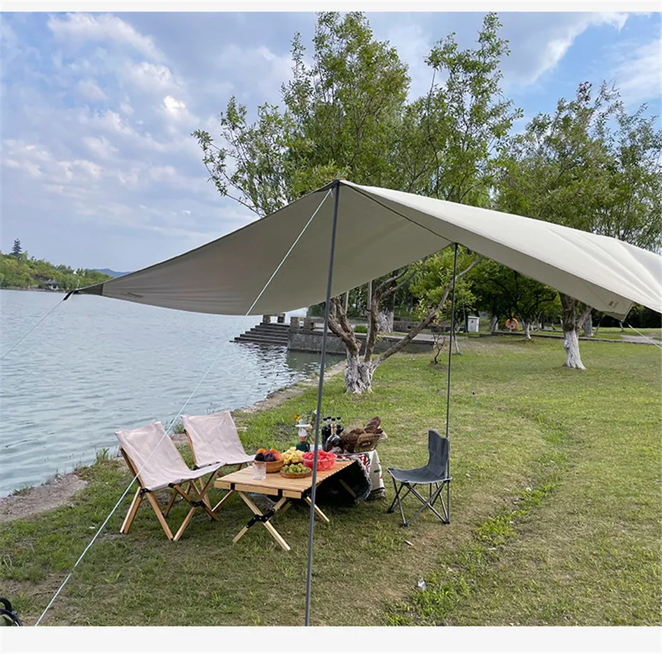 3x5m Canopy Awning Waterproof Oxford Cloth Shaded Ultralight Silver Coated Canopy Outdoor Camping Picnic BBQ Beach Sun Shelter