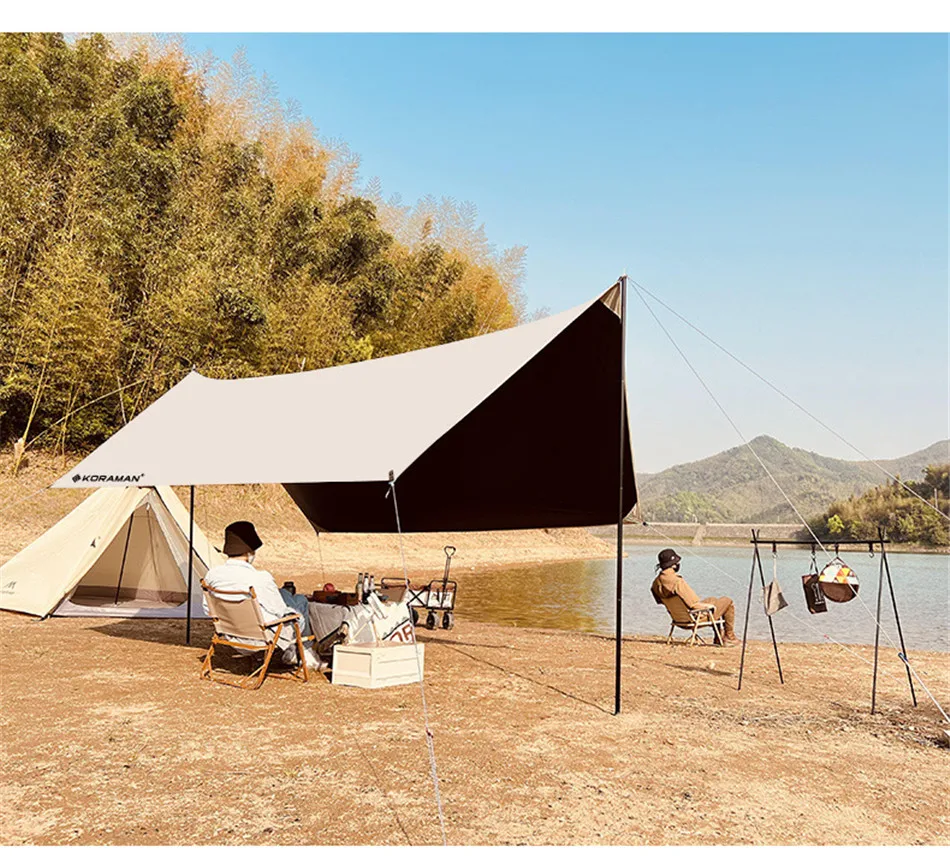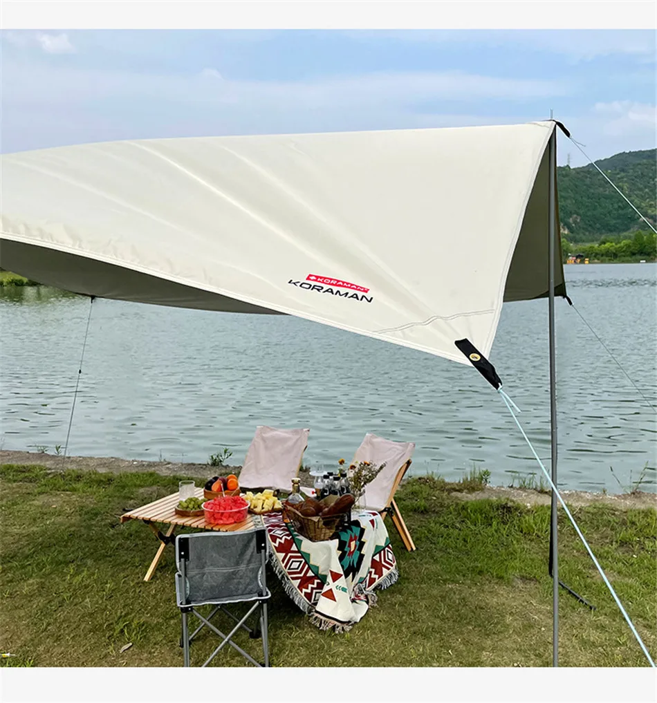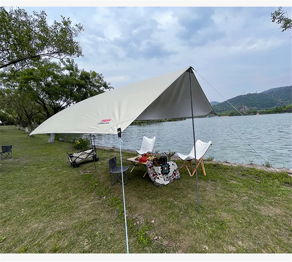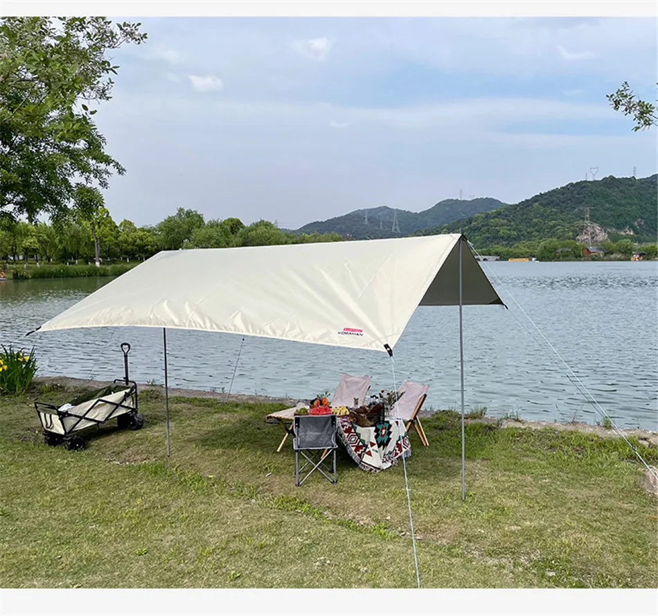 3x5m Canopy Awning Waterproof Oxford Cloth Shaded Ultralight Silver Coated Canopy Outdoor Camping Picnic BBQ Beach Sun Shelter