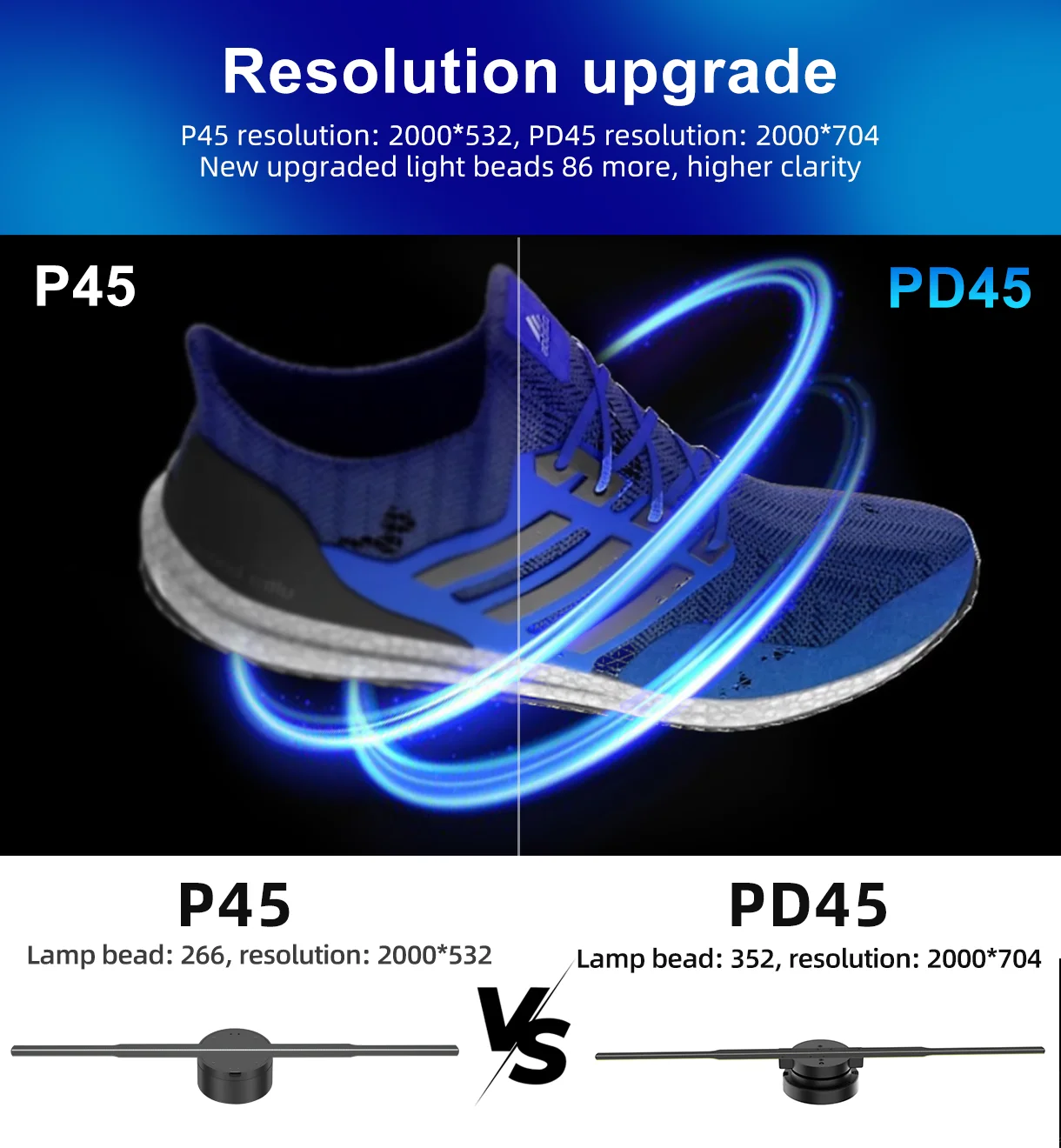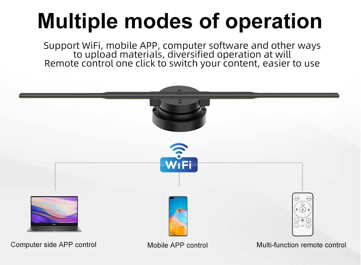 45cm Wifi Holographic Fan 3D Projector 352LED Sign Neon Smart HD Player Support Video Picture Sign Holographic Lights