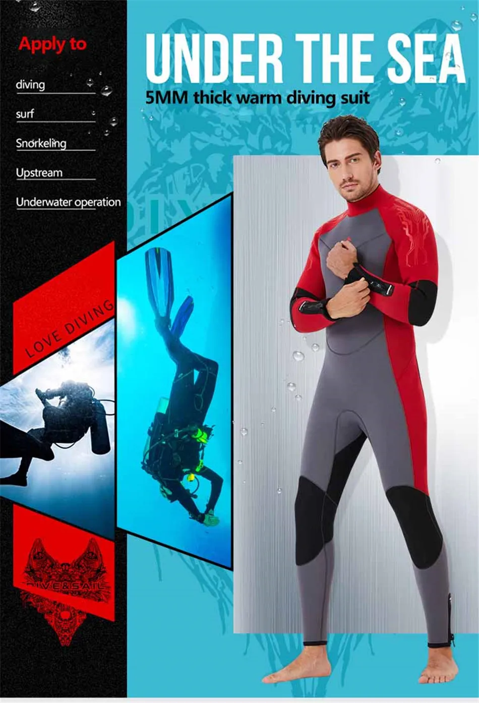 5MM Neoprene Diving Suit One-Piece Sailing Surfing Diving Suit Cold Protection Keep warm Snorkeling Anti-Jellyfish Swimsuit