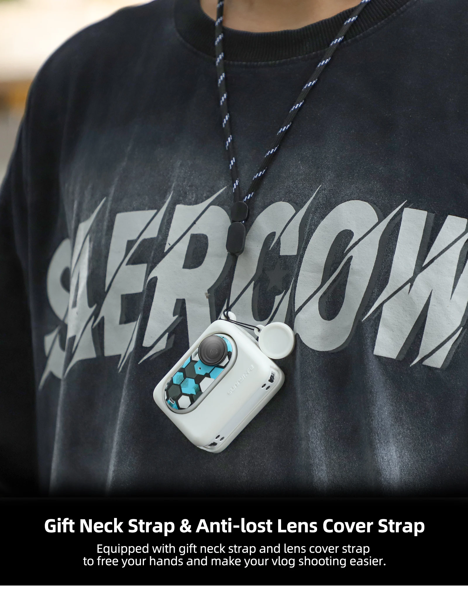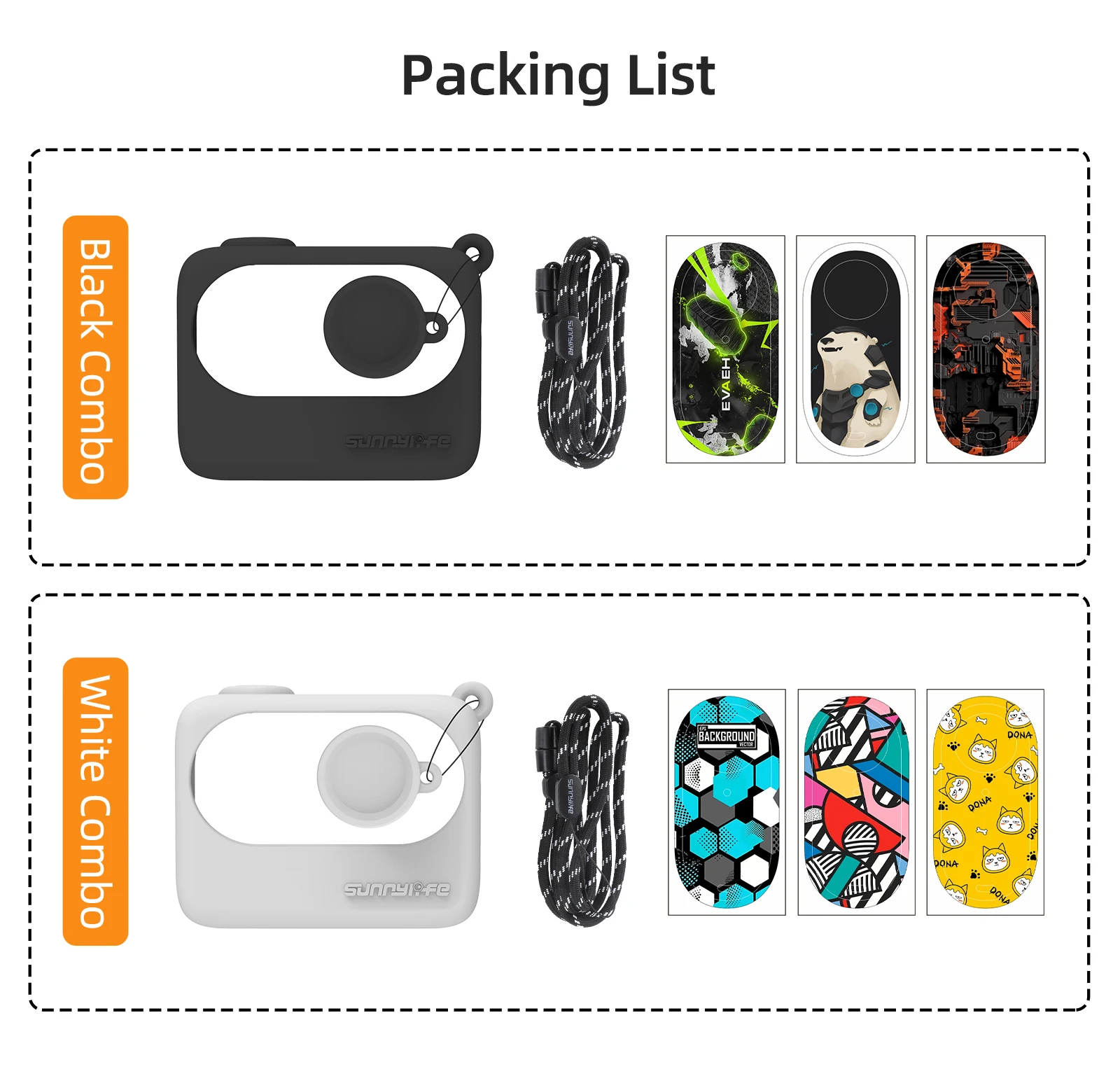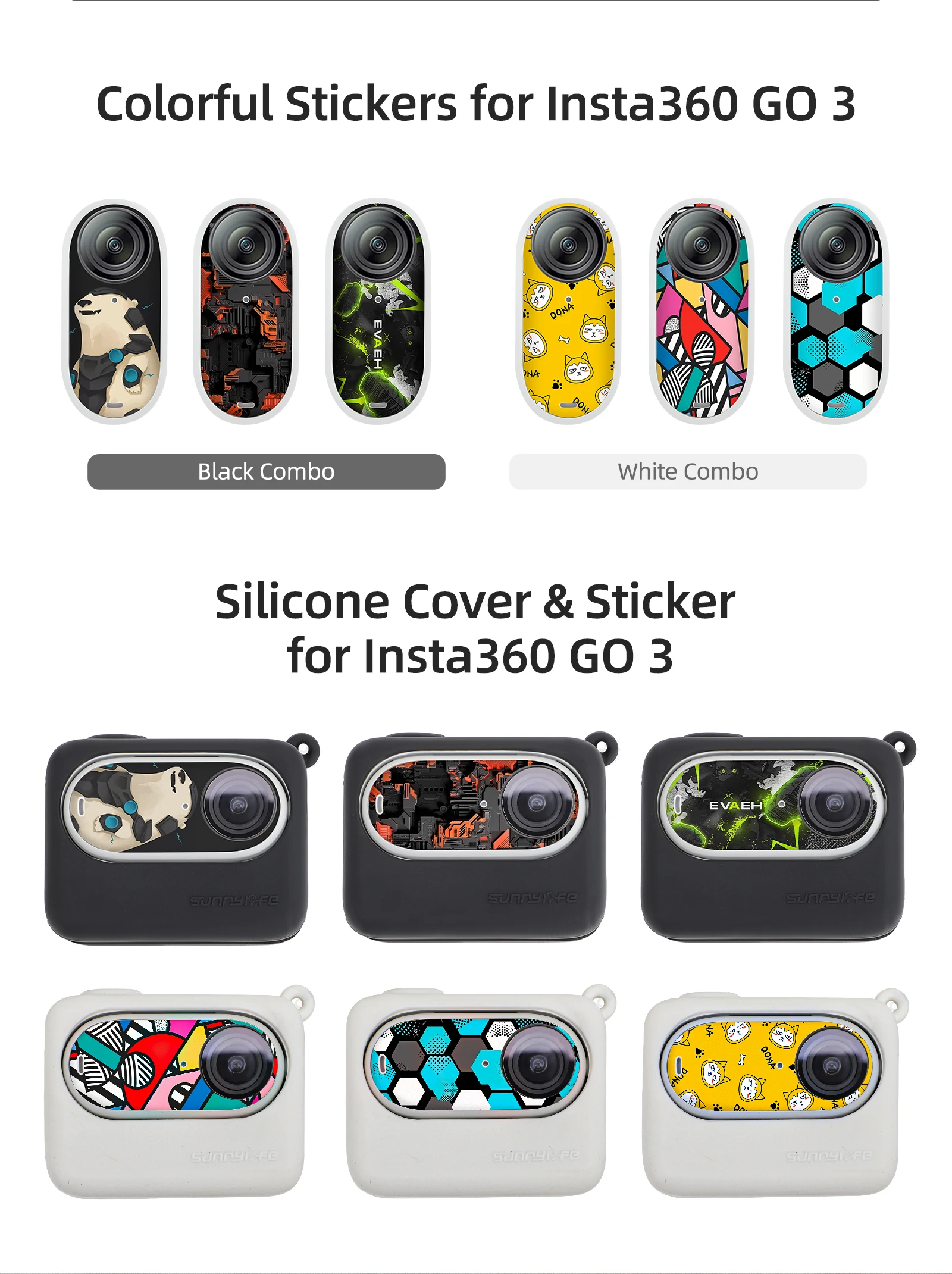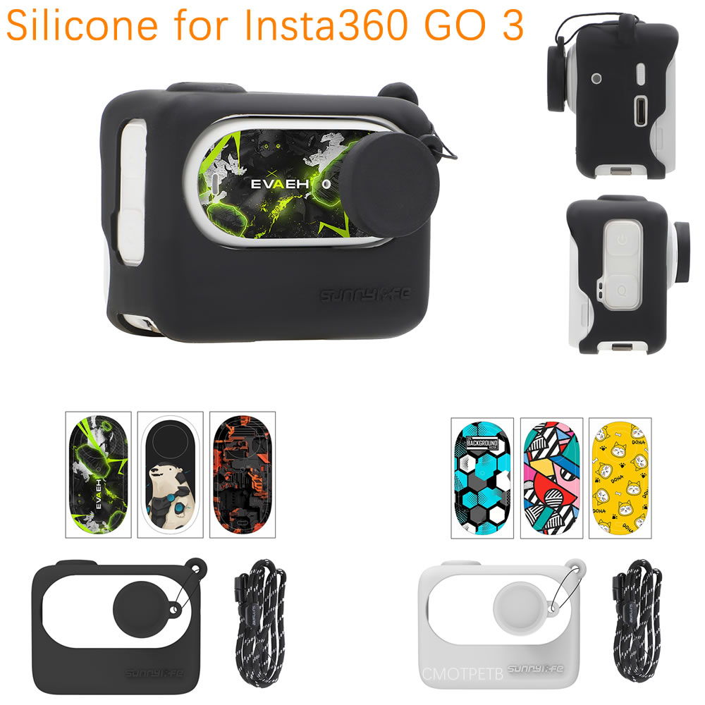 6-in-1 Combo Silicone Case Cover Lens Cap Skin Stickers Neck Strap Lanyard for Insta360 GO 3 Camera Accessories Protective Set