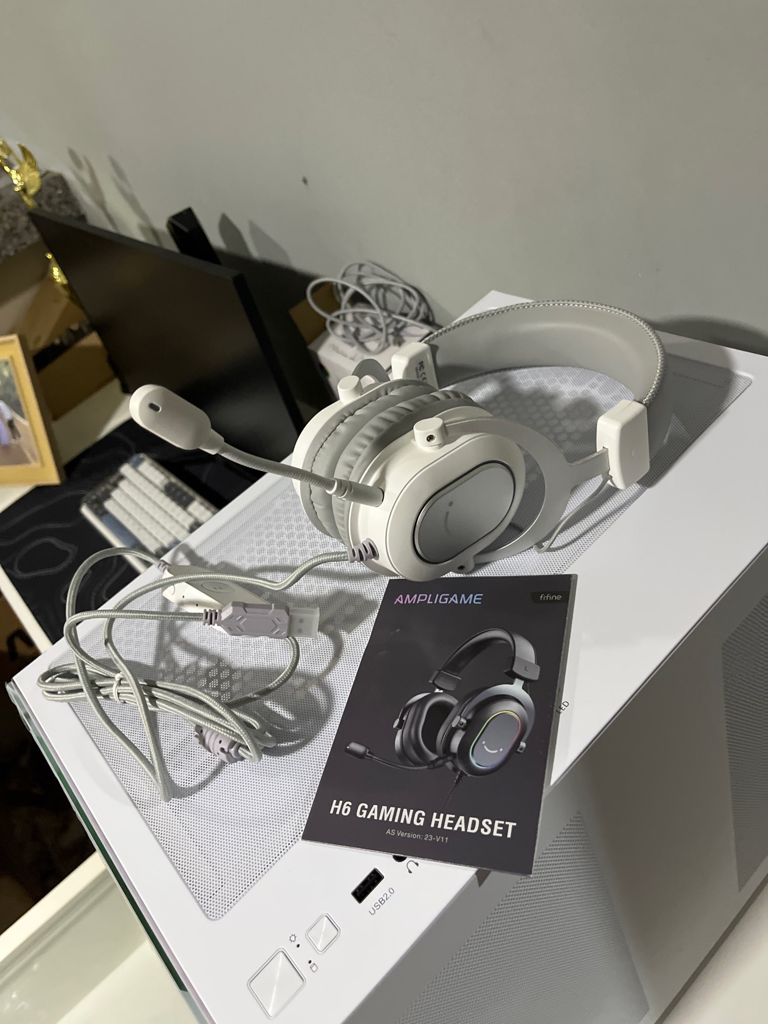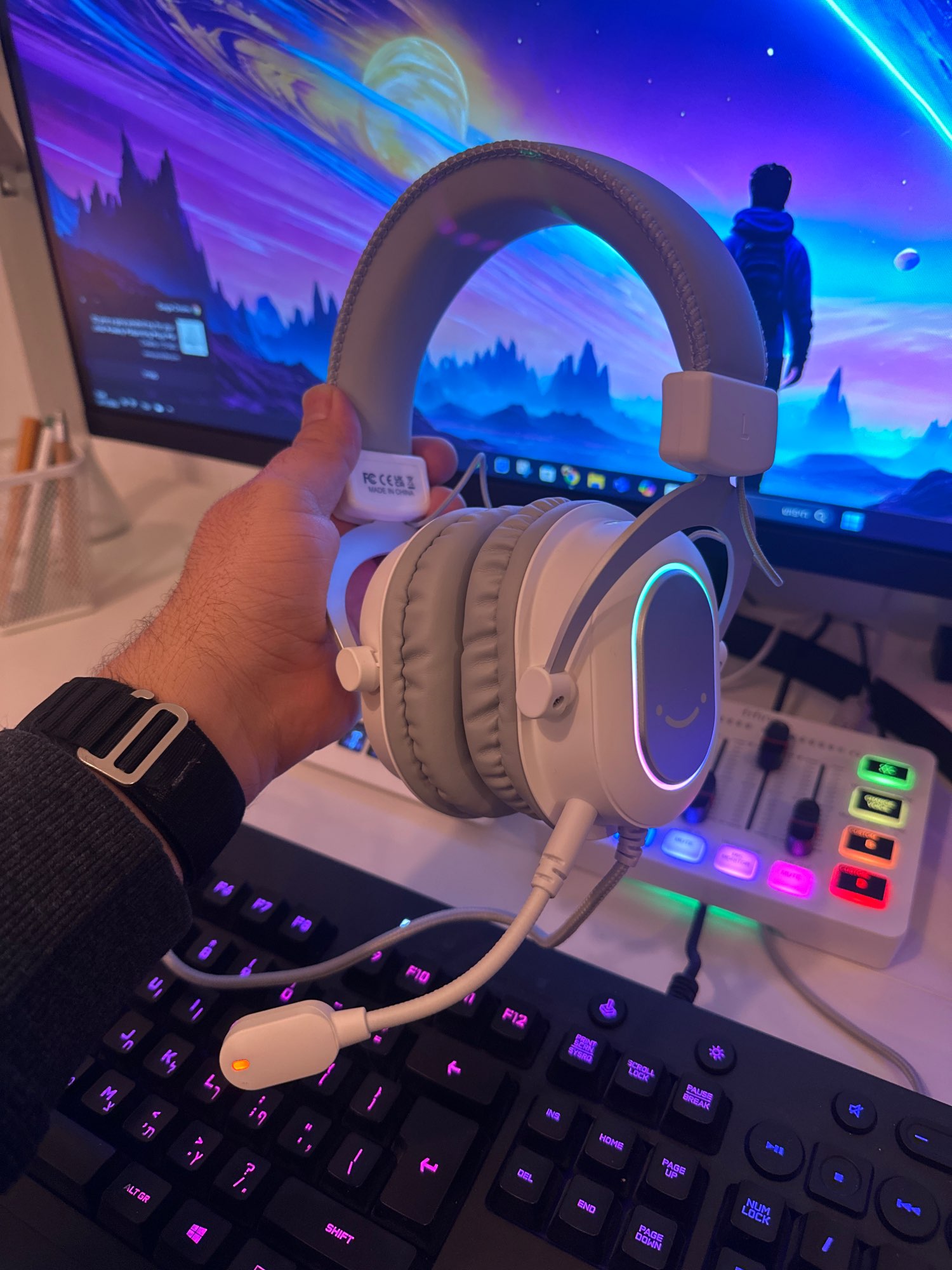 veio em perfeito estado!! o áudio está ótimo, as leds tbm, ele está um pouco apertado mas com o tempo fica melhor. o microfone não conectou de primeira, mas eu apertei bem é foi!! OTIMO AMEII ❤️