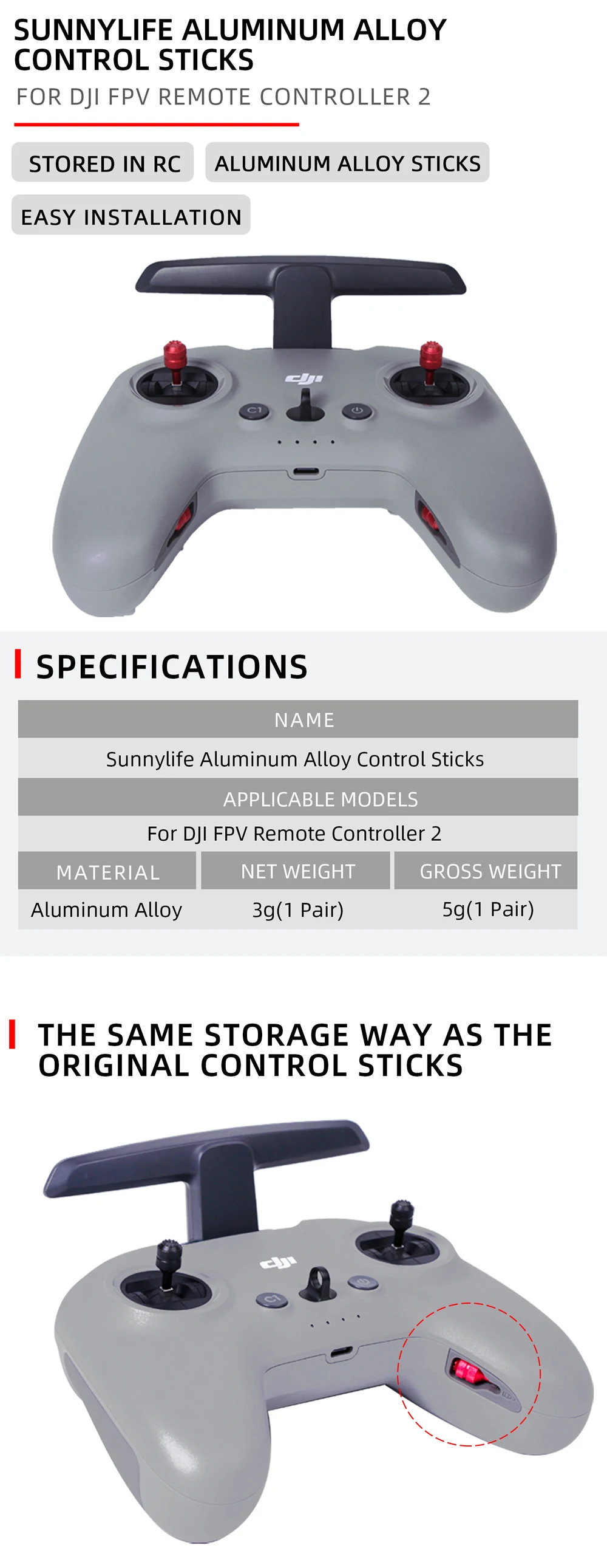 Aluminum Alloy Controller Joysticks for DJI Avata FPV Rocker Storable Thumb Joystick for DJI Avata Remote Controller Accessories
