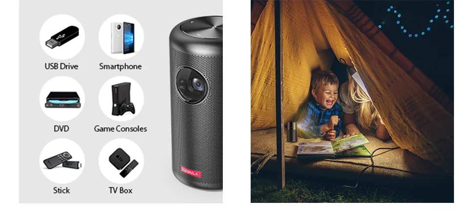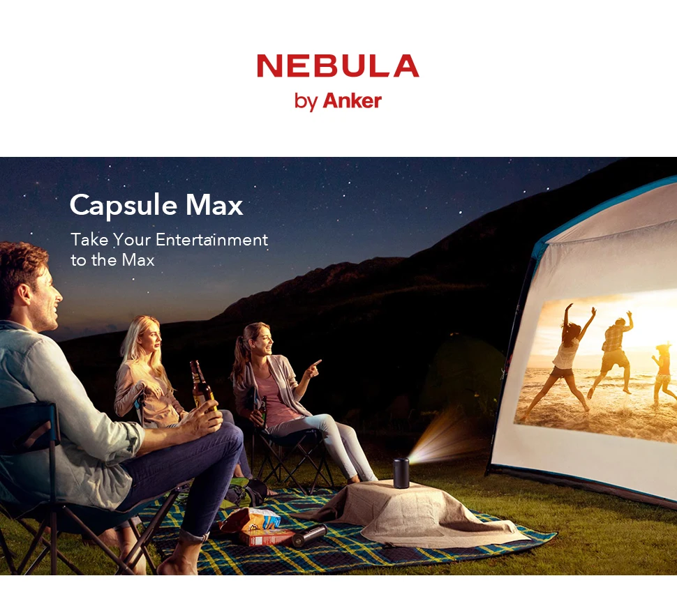 Anker Nebula Capsule Max, Pint-Sized Wi-Fi movie mini portable Projector, 200 ANSI Lumen Portable proyector, 4-Hour Playtime