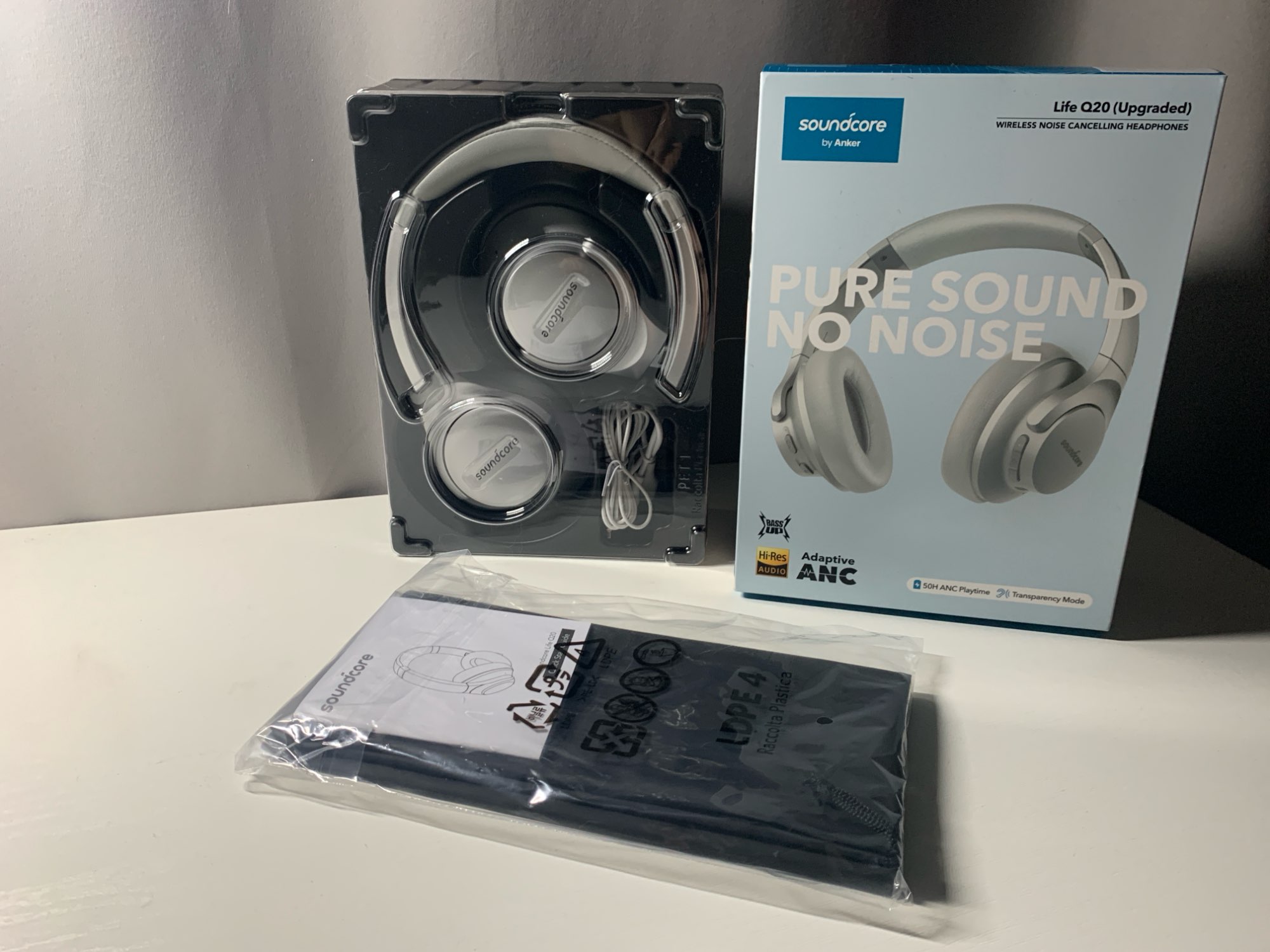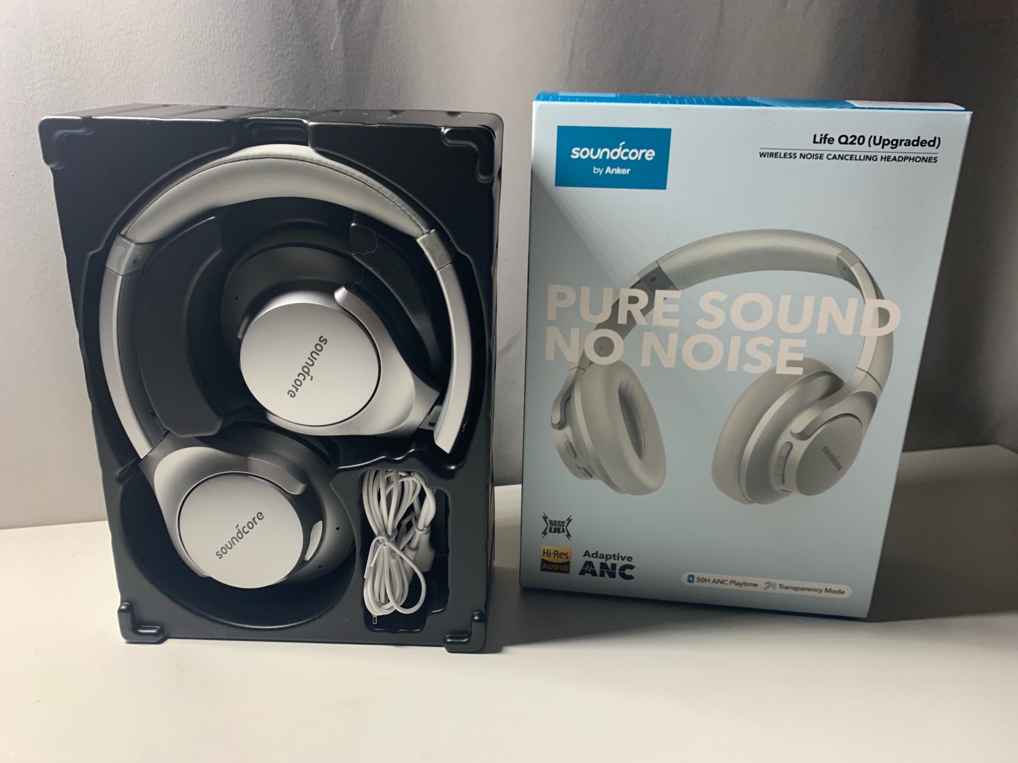 надійне пакування, швидка доставка. здивувало що прийшла новіша версія навушників q20 (update) різниця найбільша в тому що тут type c зарядне. звук нормальний, не прямо вау, але добрий. також +, що можна налаштувати під себе звук. стильні, срібний колір вау