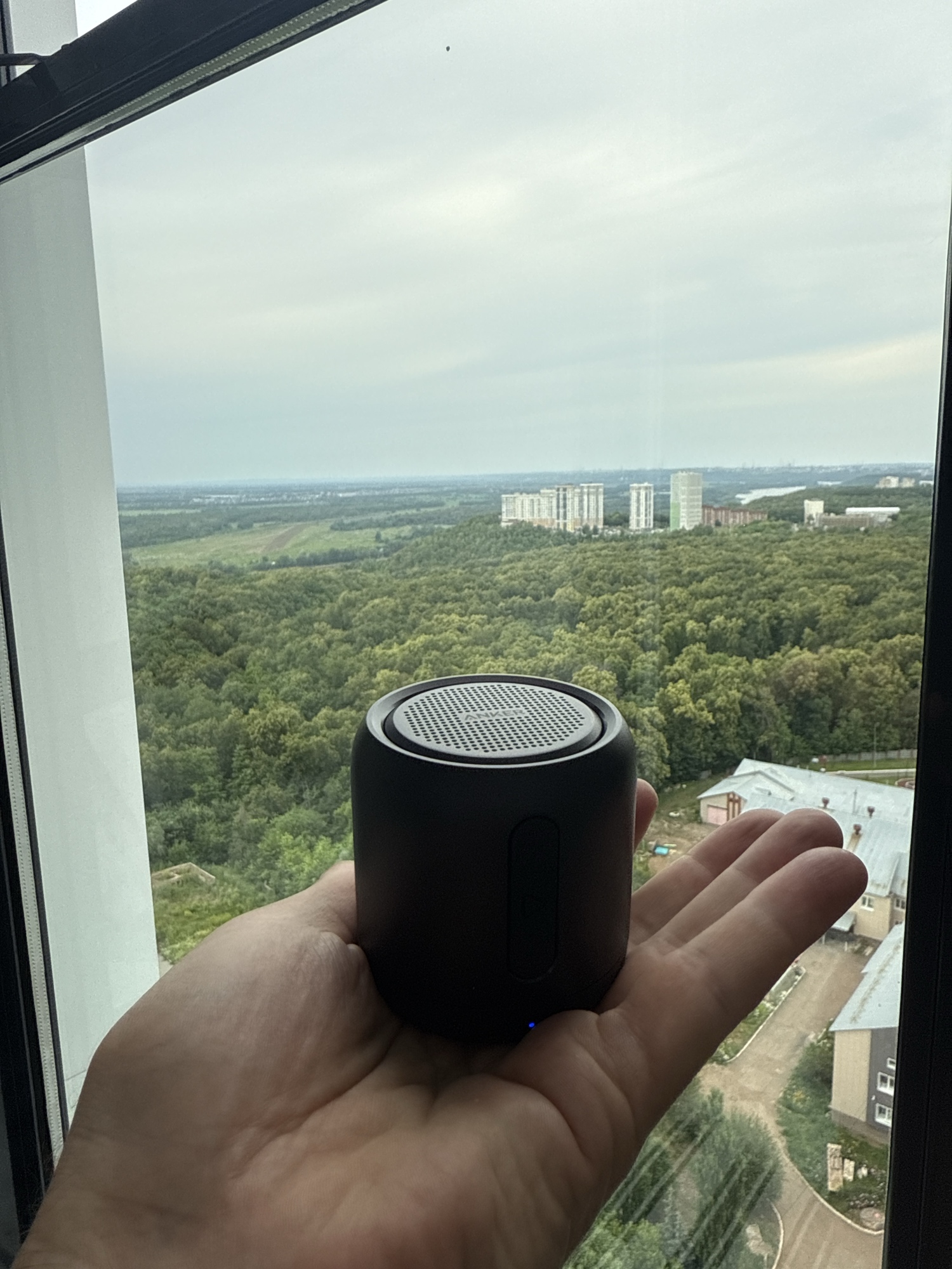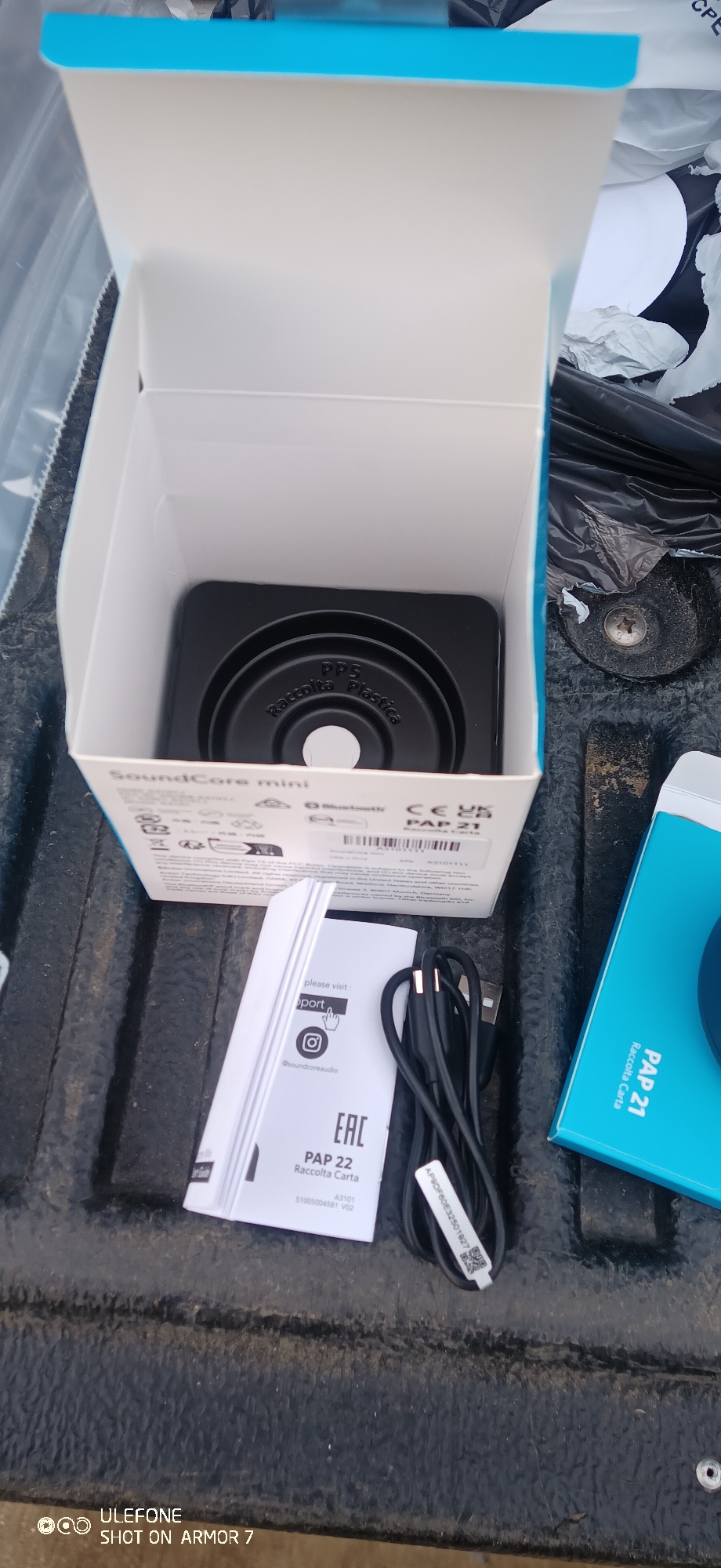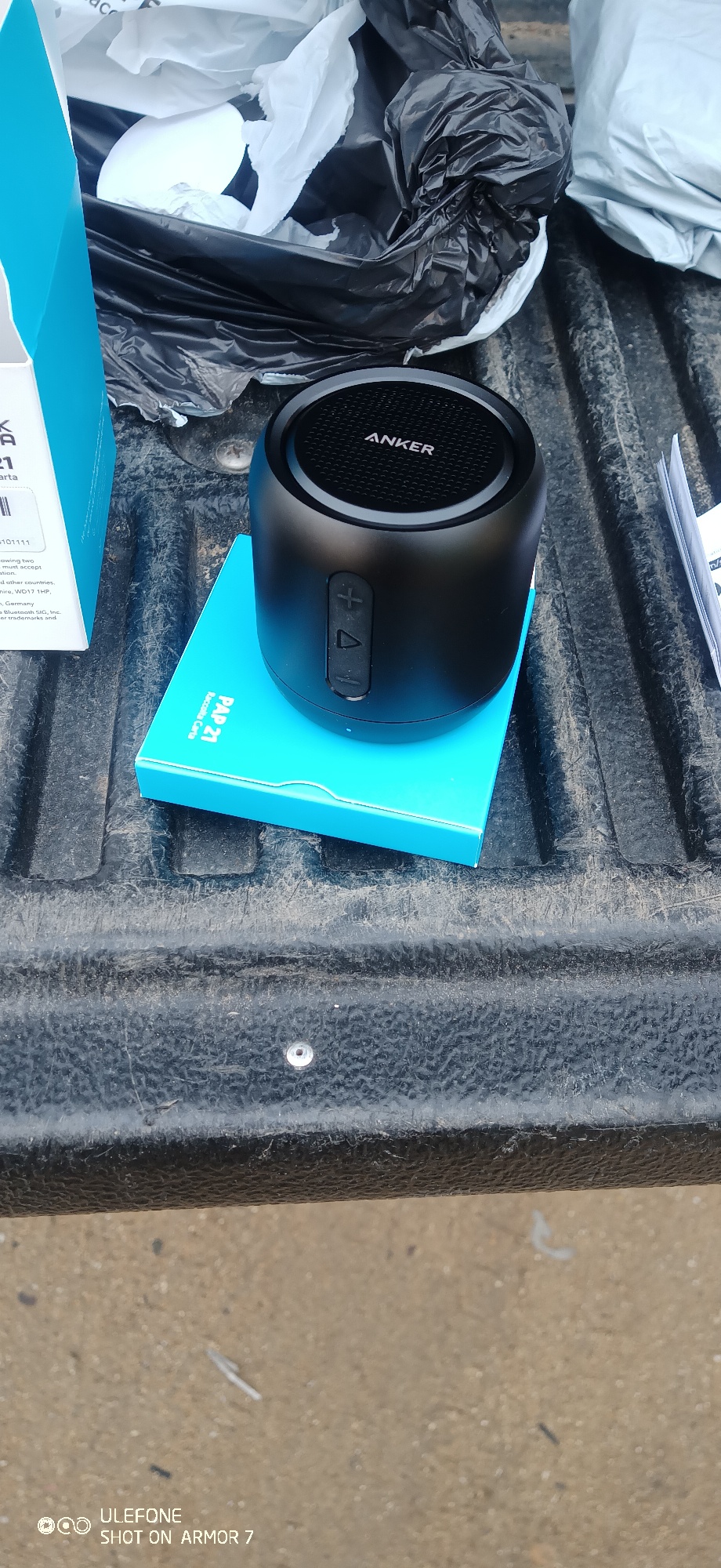Приехала Укрпочтой. Anker запаковал хорошо, но коробка все равно немного примялась. Колонка металлическая, играет хорошо.