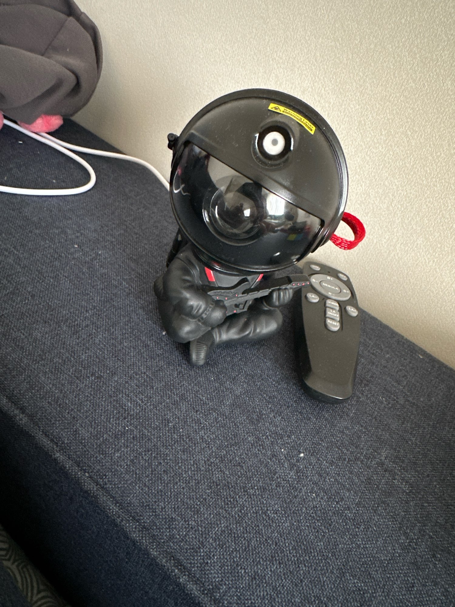 The astronaut looks very cool and how he projects the only one that I did not see or what happened to me in the propaganda is that he has a laser and how it is for young children because he will not be able to give it to him because of the dangerous laser I bought it because it said led. But this very father
