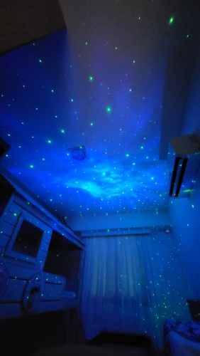 Good product, my children are fascinated with it. The light is very beautiful and has several modes, timer, color change, lower lighting of both the nebula and the stars. And the speed of rotation.