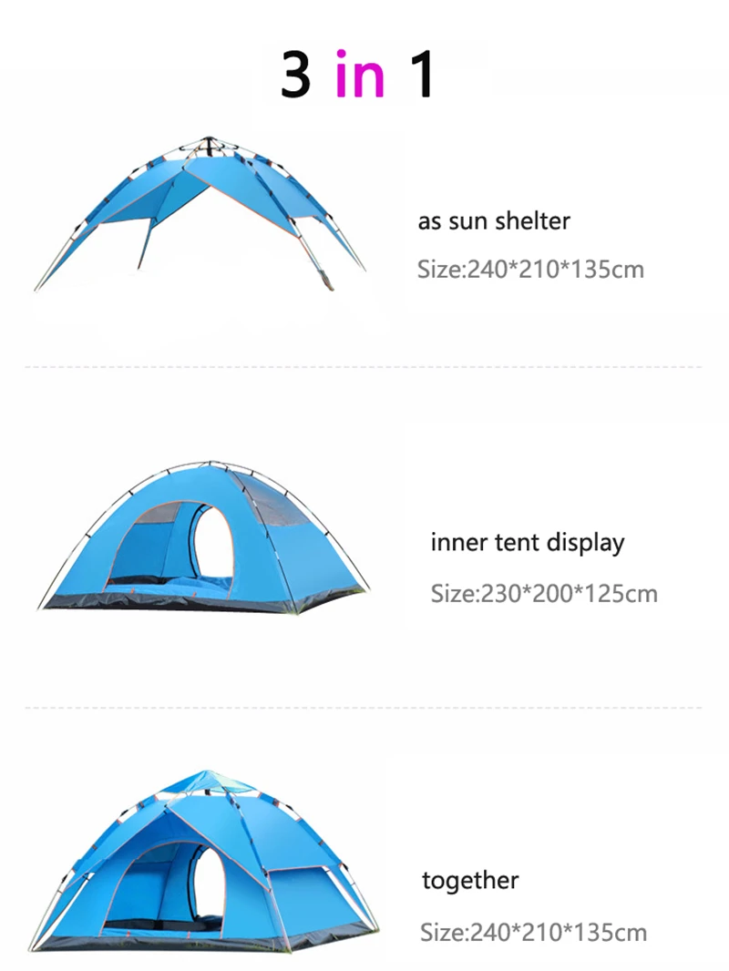 Automatic Outdoor Camping Tent 1-4 People Easy Open Anti-UV Tent Tourist 4 Seasons Rainproof Family Travel Beach Garden Tents