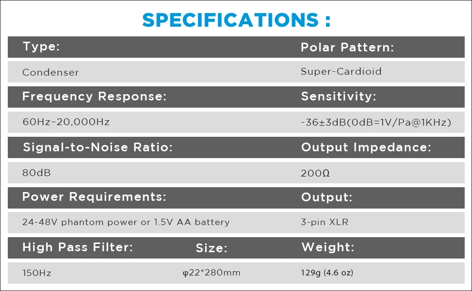 Professional Shotgun Mic,Handheld Microphone,60Hz-20000Hz