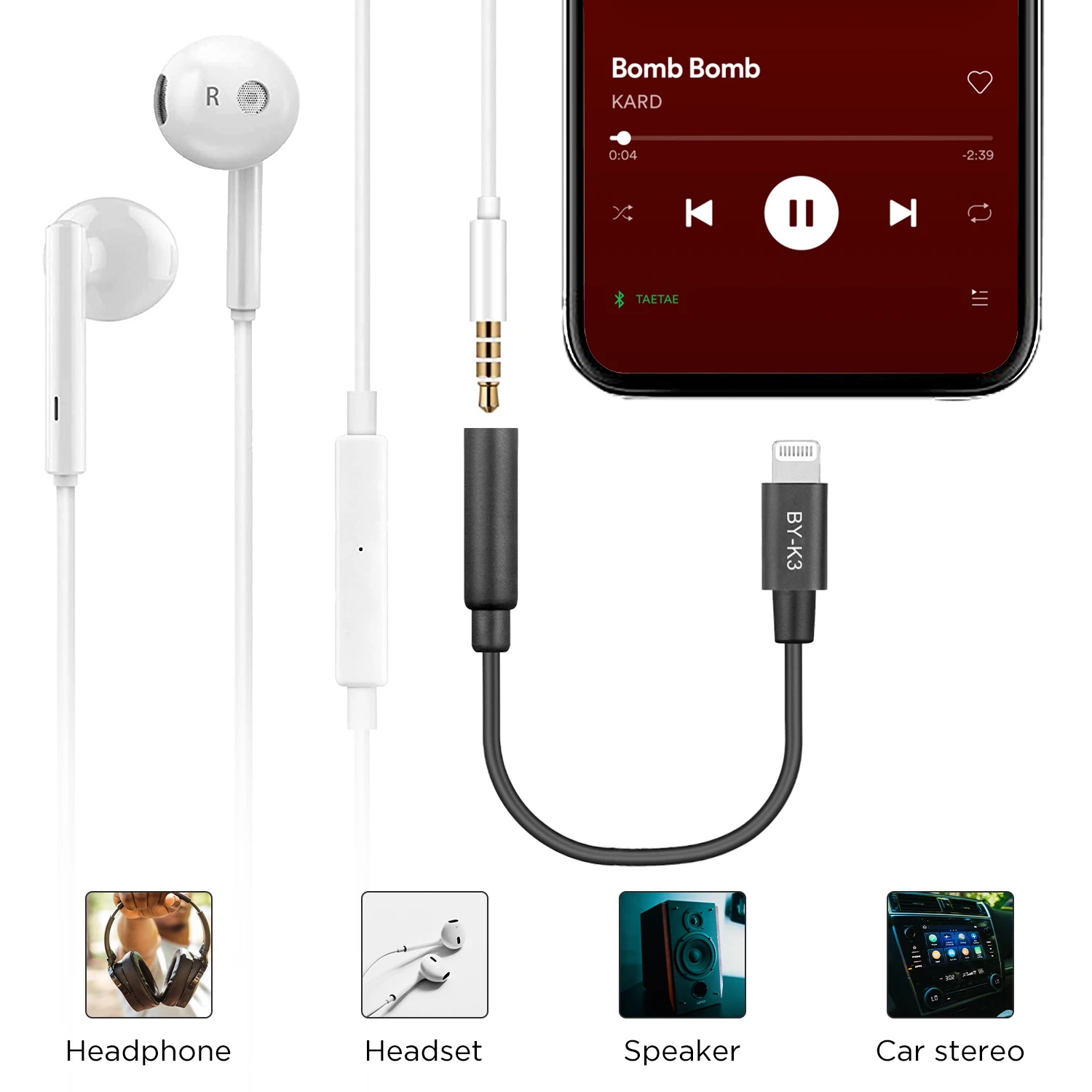 BOYA BY-K3 3.5mm TRRS(Female) to Lightning(Male) MFi Certified Audio iPhone Mic Adapter for iPhone iPad iOS Devices Earphone