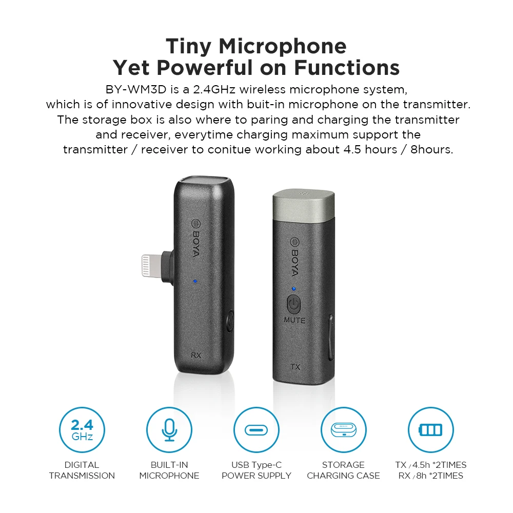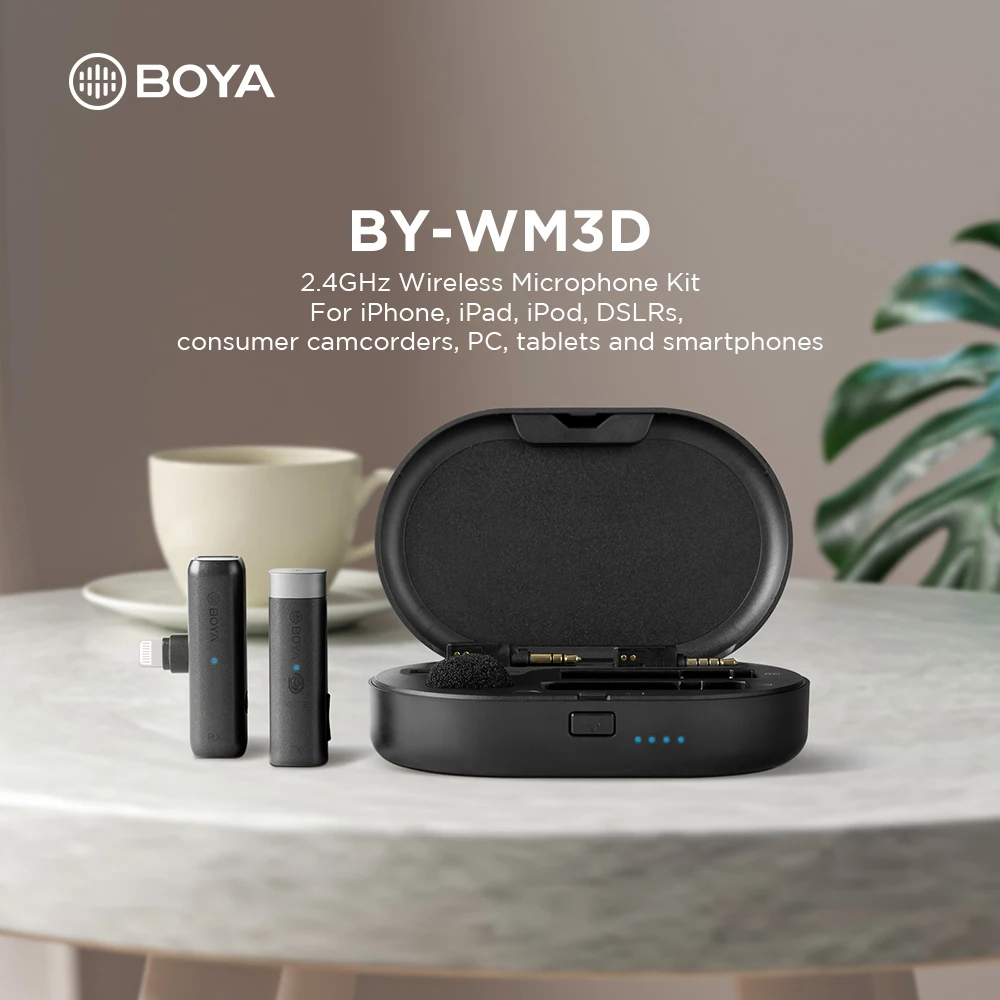 BOYA BY-WM3D Wireless Lavalier Microphone Recording Audio Video Lapel Mic for iPhone Live Broadcast Streaming with Charging Box