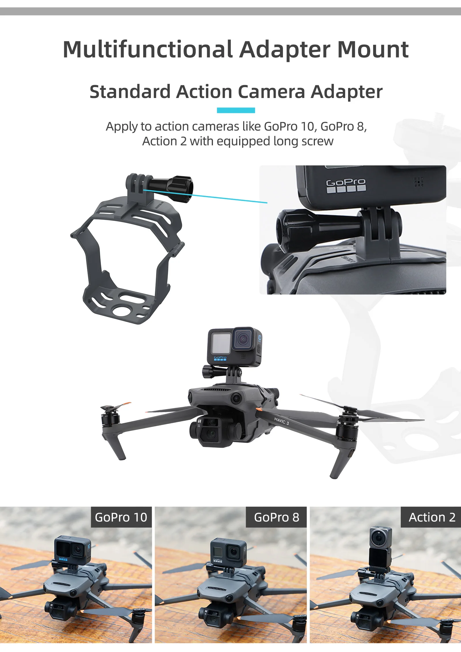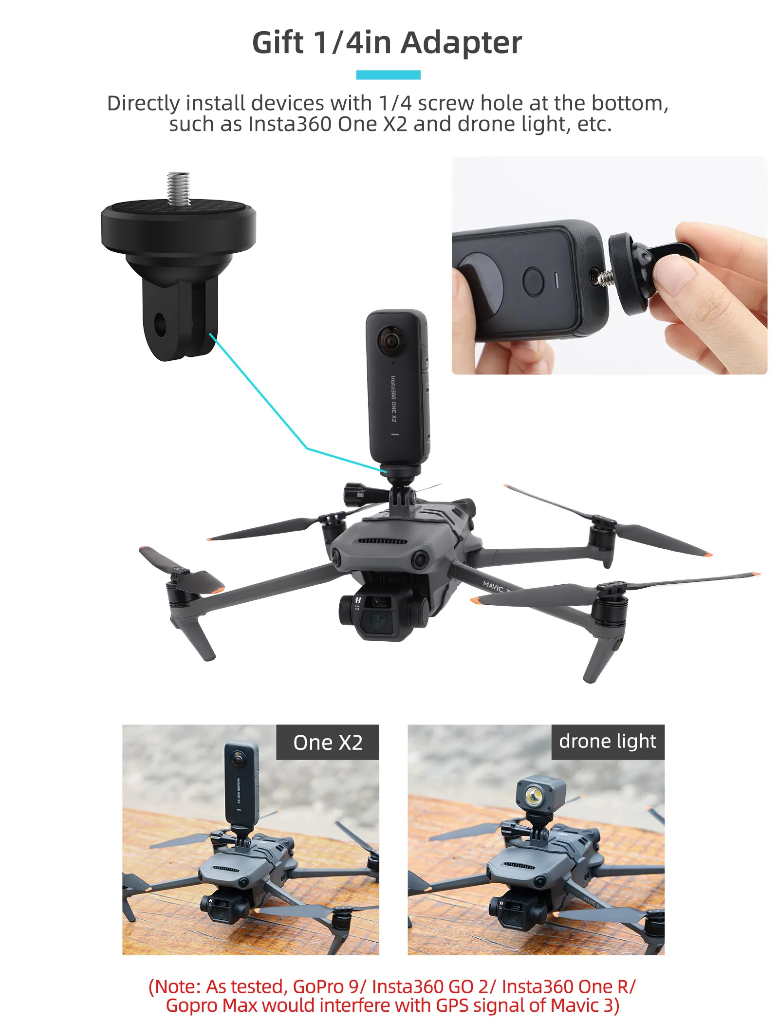 Bracket Holder with 1/4 Threaded Screw for DJI MAVIC 3 CLASSIC Flashlight Night Lights Extended Adapter Bracket Headlights