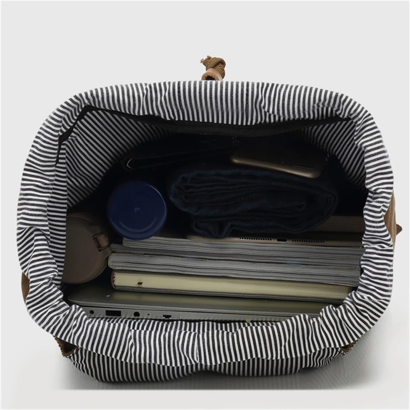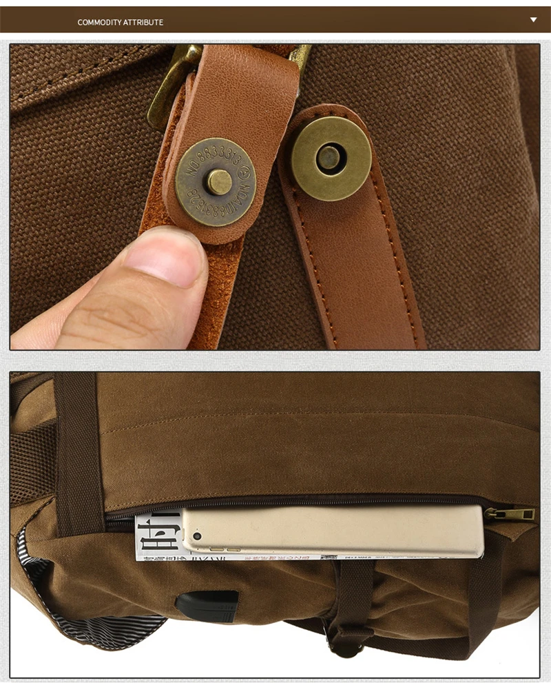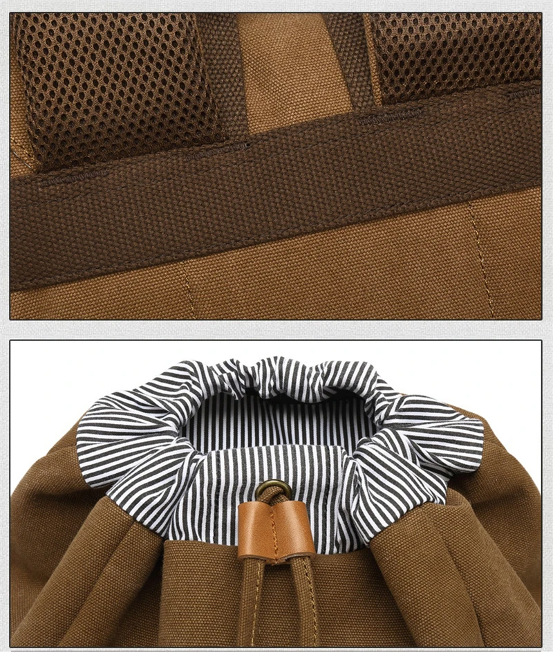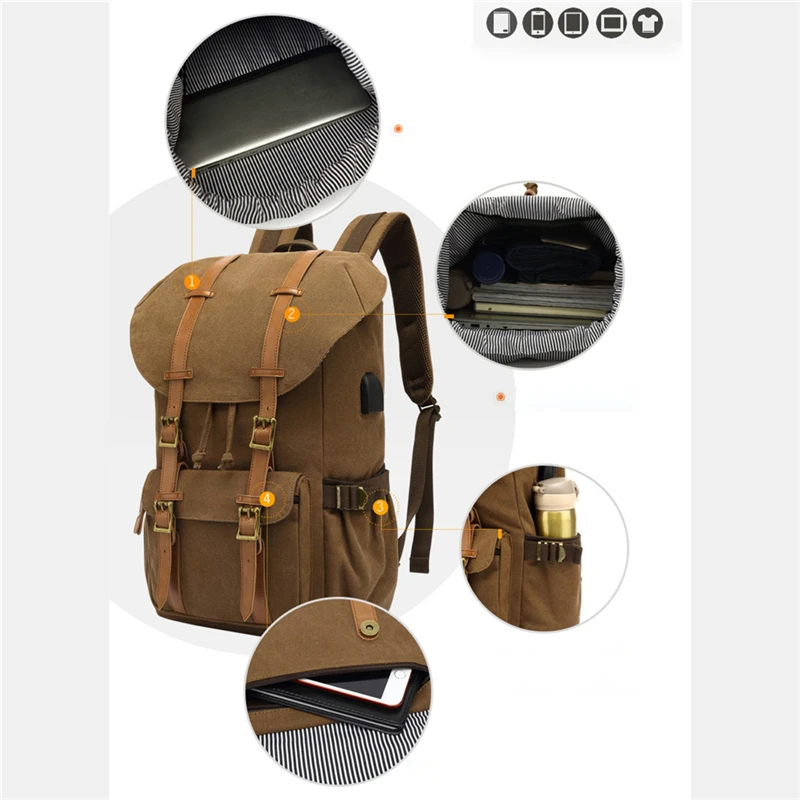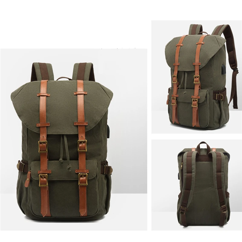 Canvas Men Travel School Backpack Fashion USB Charging 15.6” Laptop Bag Large Capacity Waterproof Beam Port Drawstring Backpack