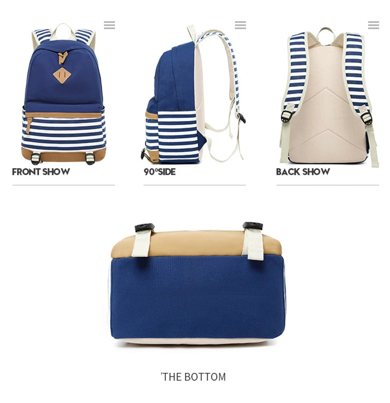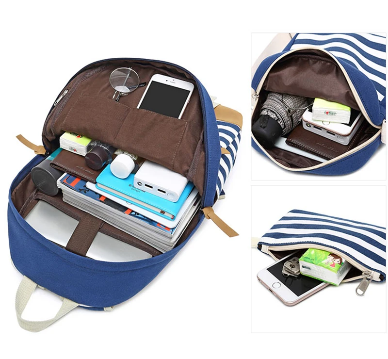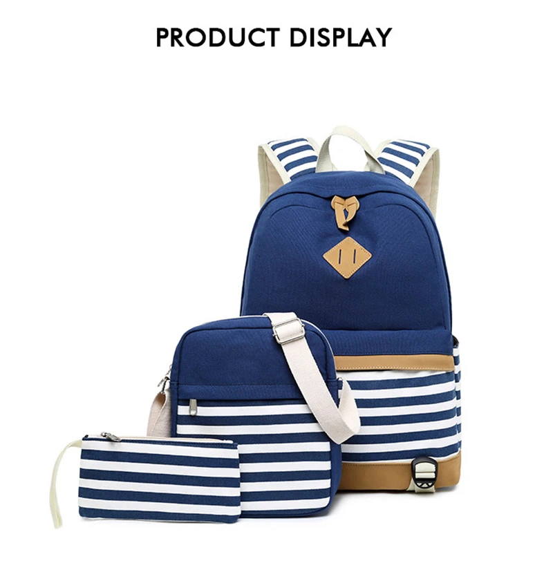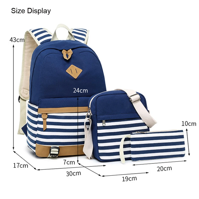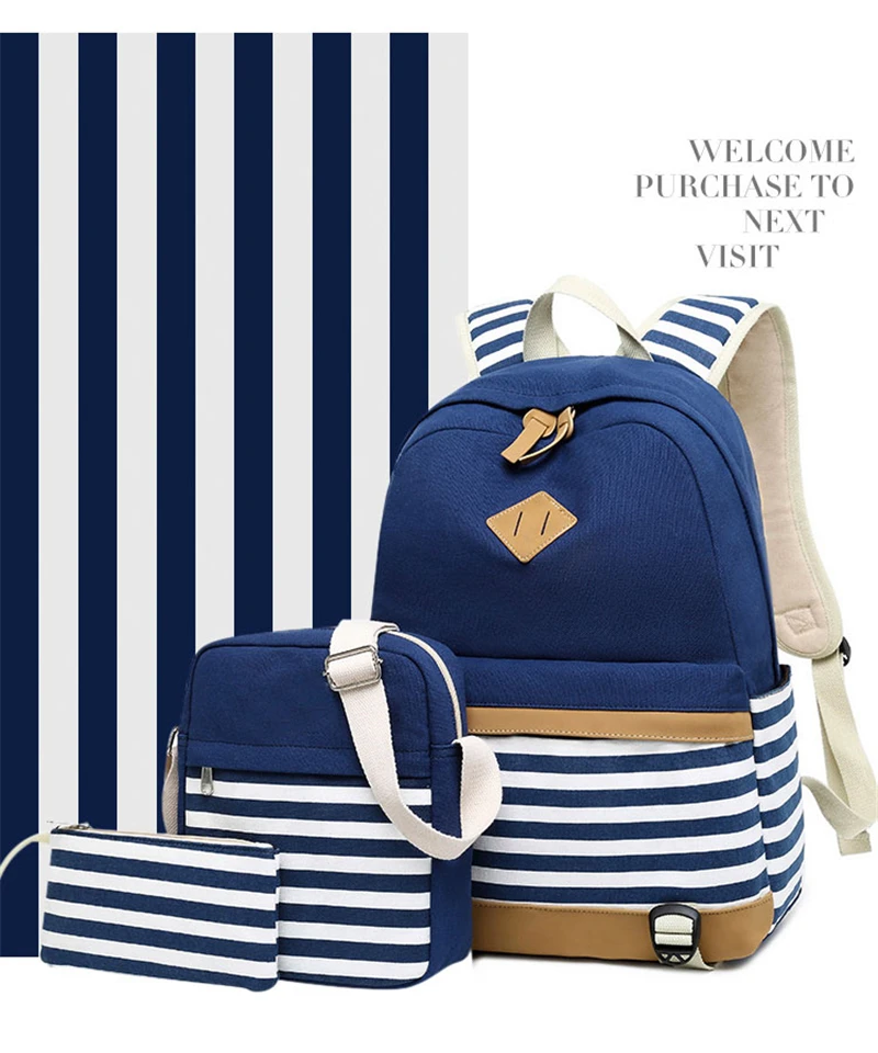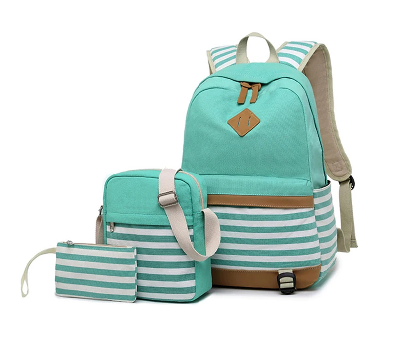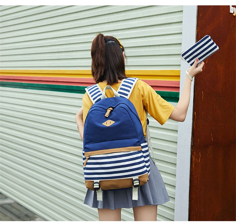 Canvas Three-piece Women’s Backpack For Teenage Girls Fashion Striped Casual Daypack Female Pink Large Capacity School Rucksacks