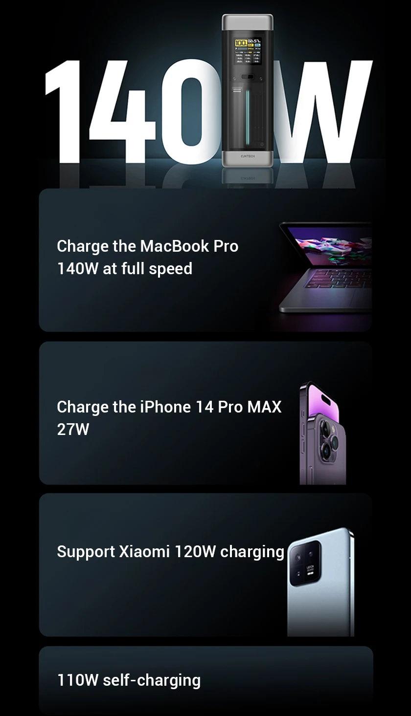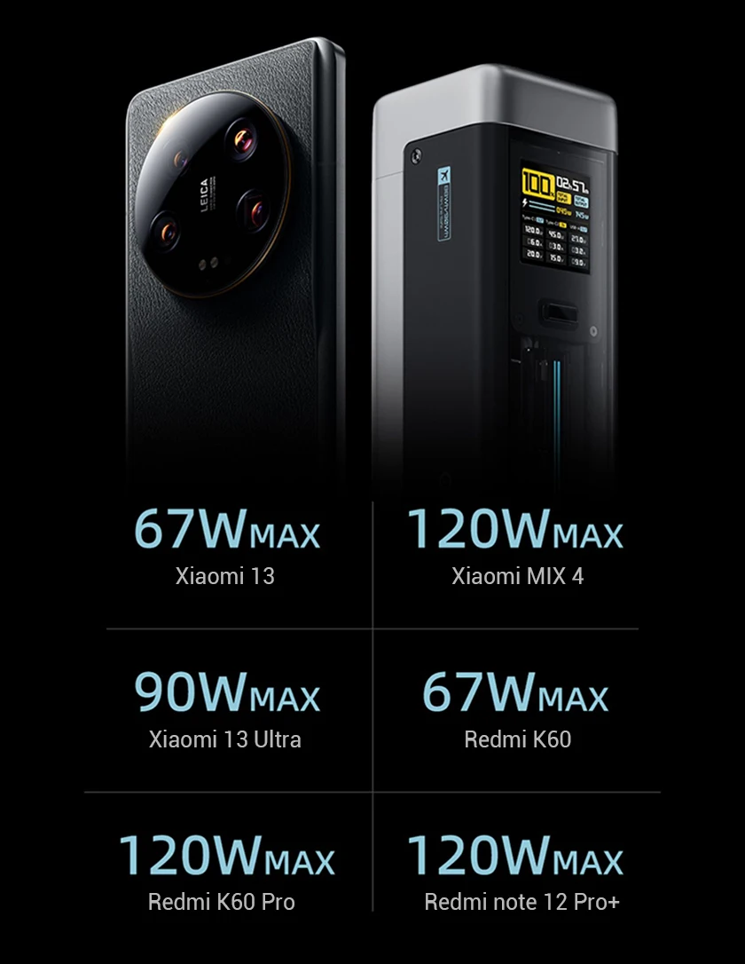Xiaomi 14pro can trigger 120w. It takes about an hour to fully charge this power bank with the original charger of 14pro.