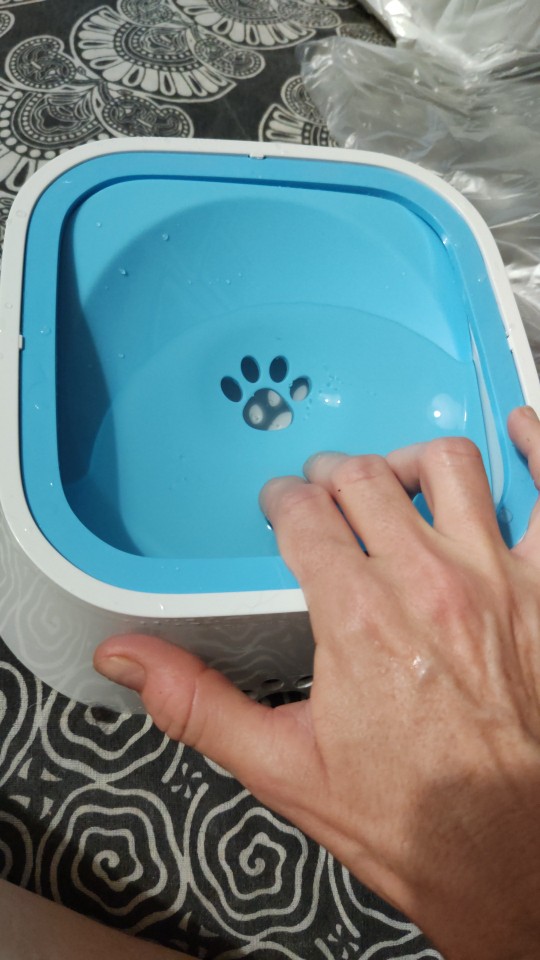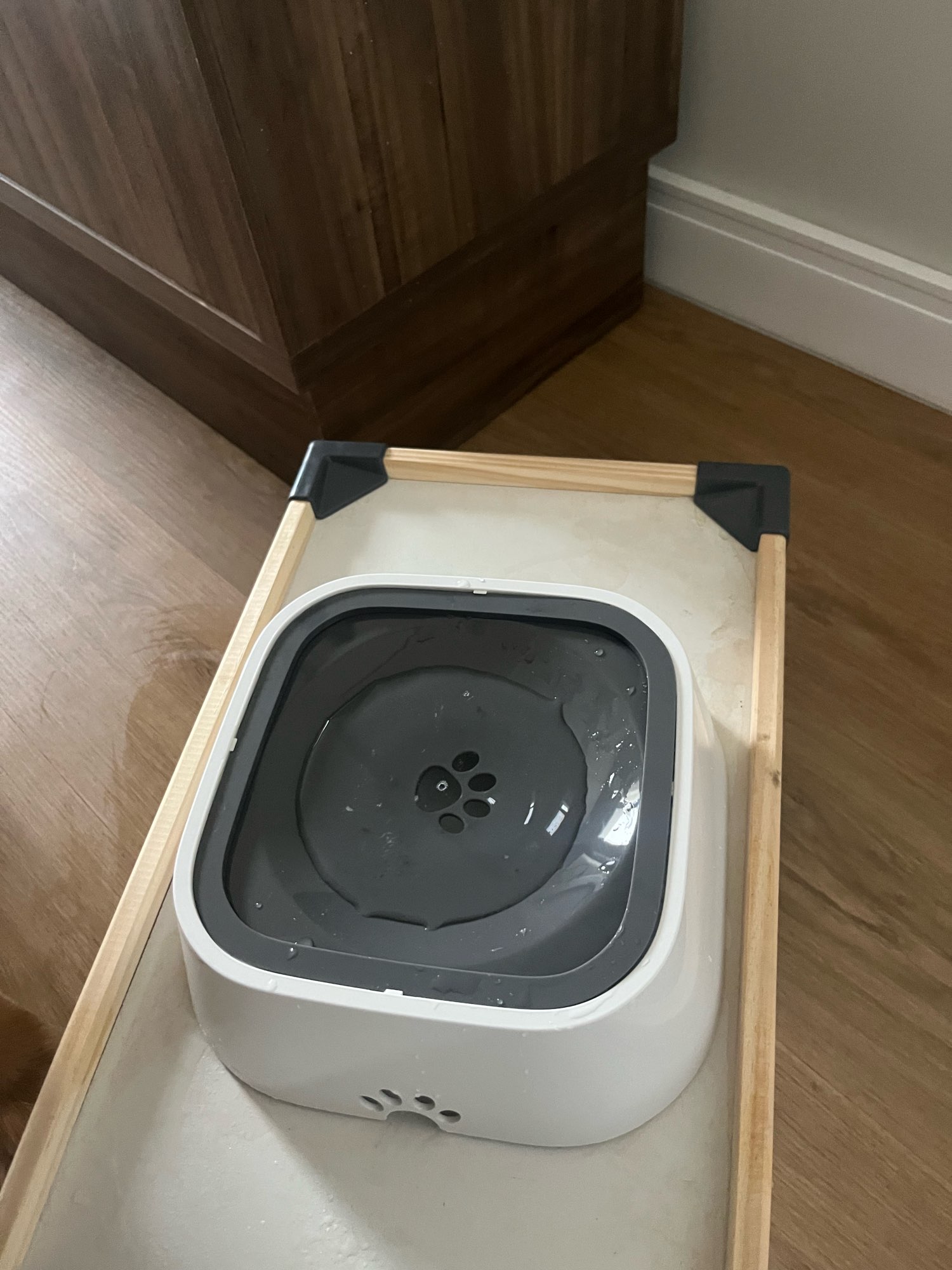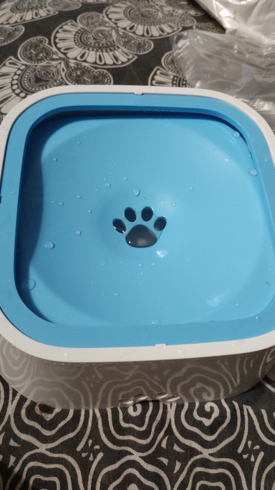 As you can see, a good drinker. It is not so good for me, my dog is a Fox terrier with a lot of beard and still gets wet. But maybe something less
