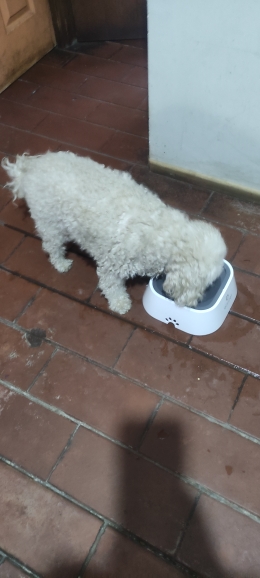 At first my beagle did not understand that there was his water, but once he started drinking from there, no more water stains on the floor, I love it
