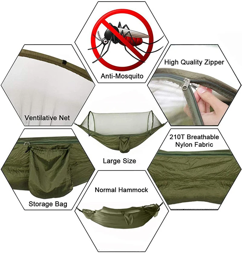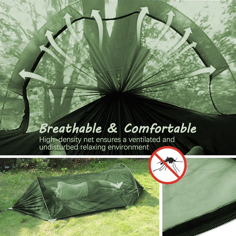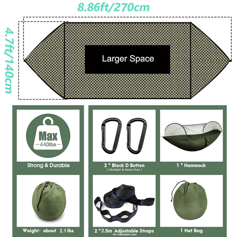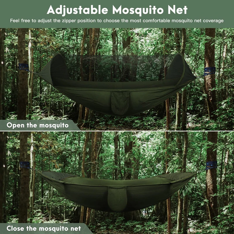 Double Camping Hammock with Mosquito Netting Pop-up Portable Hammock Ultralight Nylon Parachute Hammocks with Tree Straps