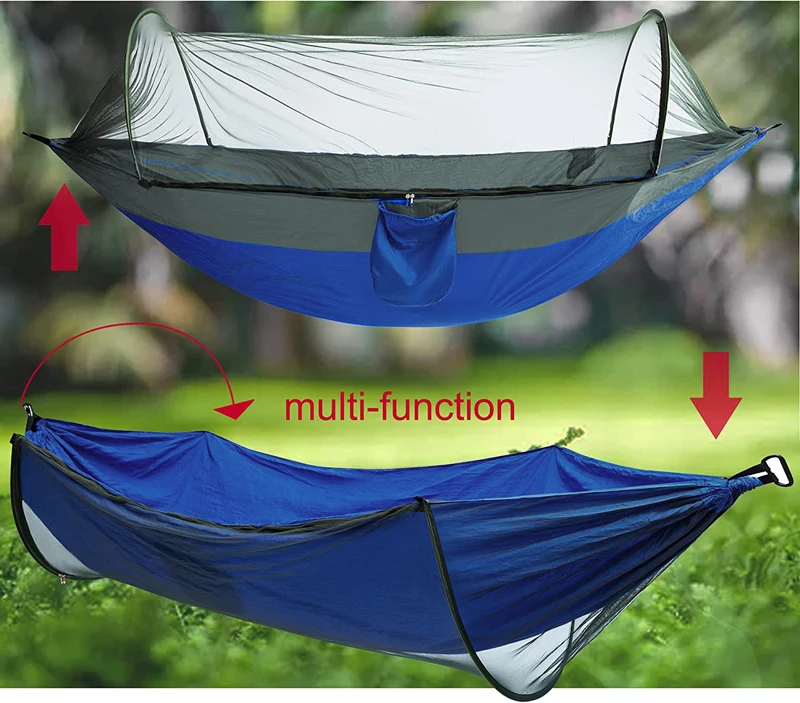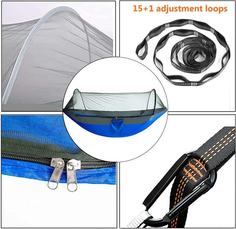 Double Camping Hammock with Mosquito Netting Pop-up Portable Hammock Ultralight Nylon Parachute Hammocks with Tree Straps