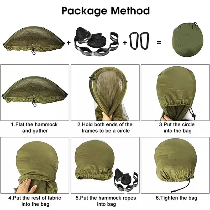 2 black hooks,2 tree strap,1hammock with mosquito net