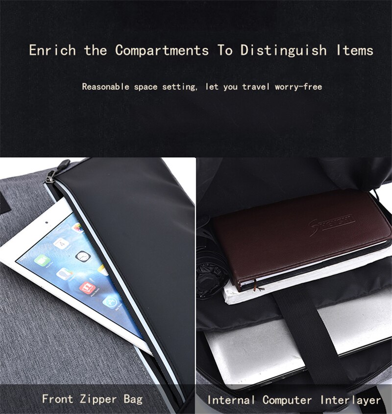 Fashion 14″ Laptop Backpacks Men Multifunction USB Charging Teenage Schoolbag Male Waterproof Large Capacity Business Travel Bag