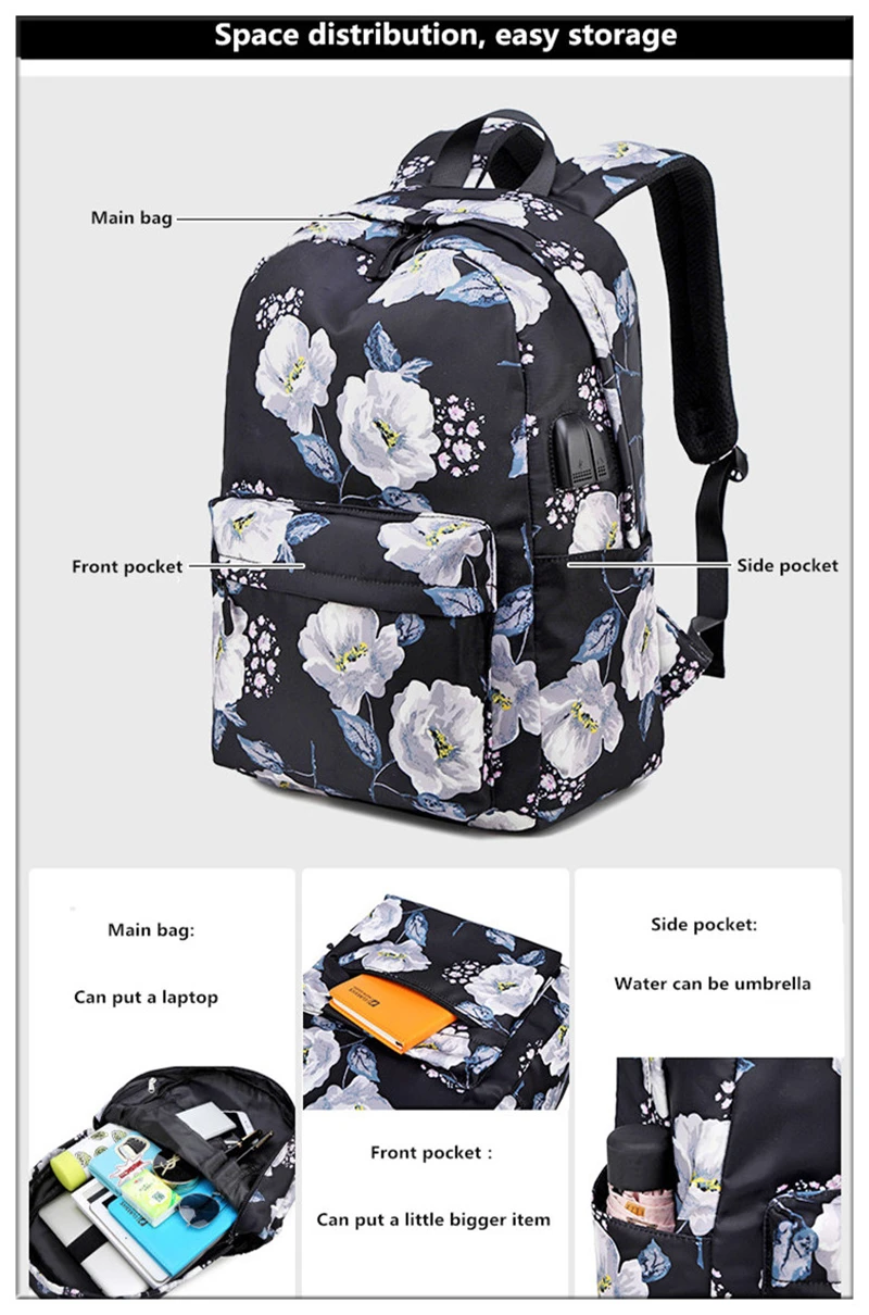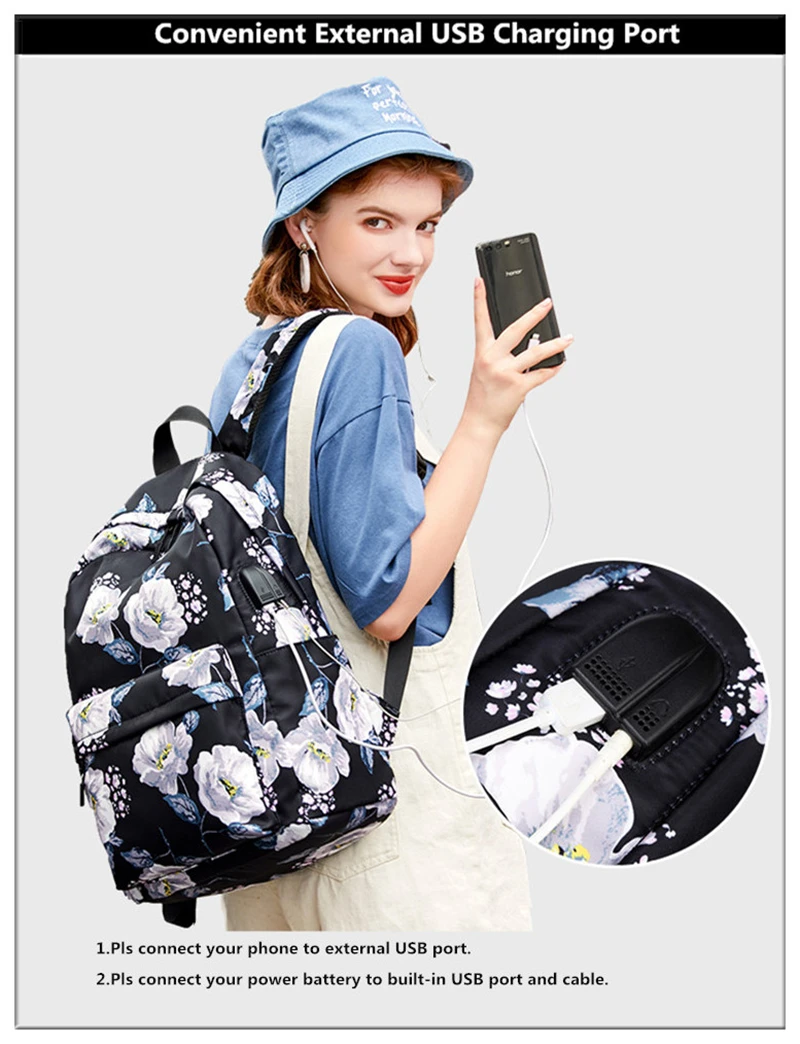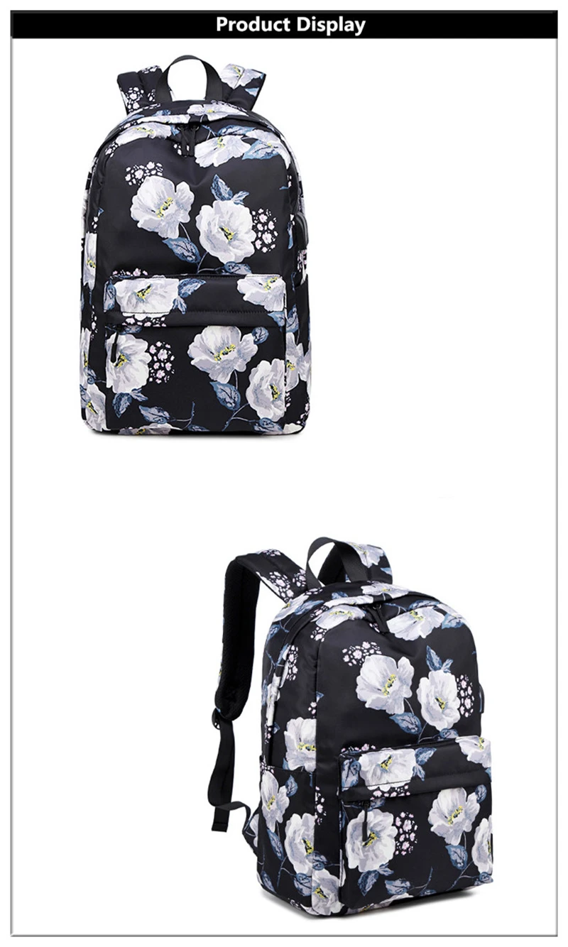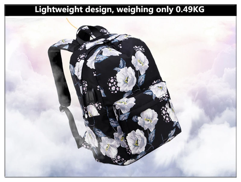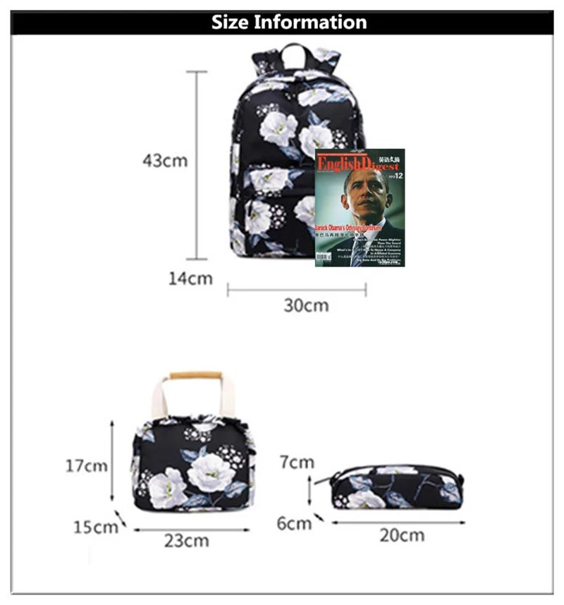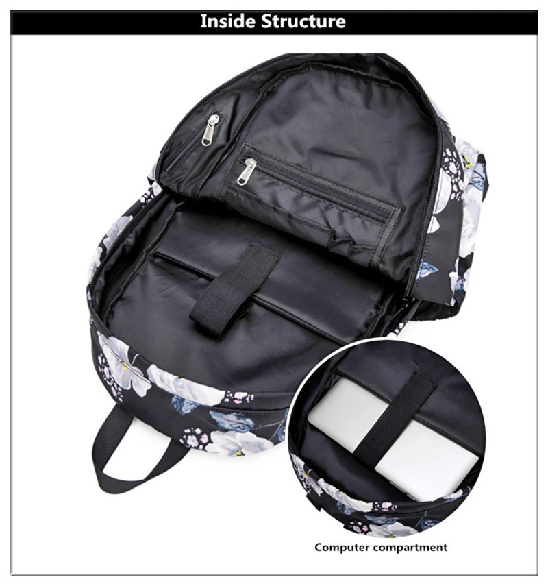 Fashion Floral Girls Backpack Three-piece School Lightweight Bookbags Nylon Waterproof Teen School Bags Set Women Travel Daypack