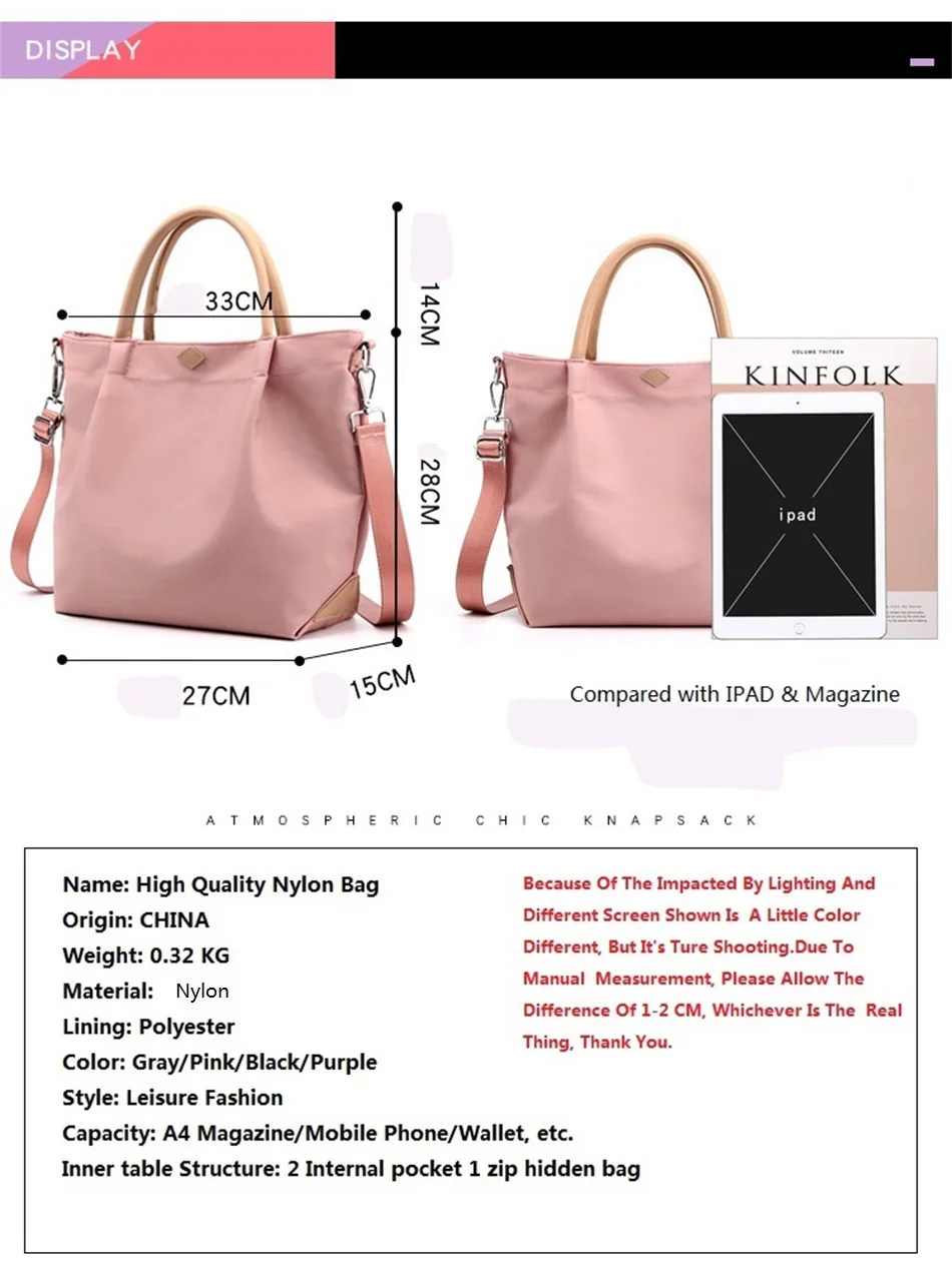 Female Shopping Work One Shoulder Bag Waterproof Nylon Friends Gathering Handbags New Large Capacity Travel Female Messenger Bag