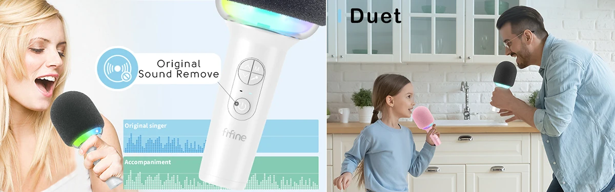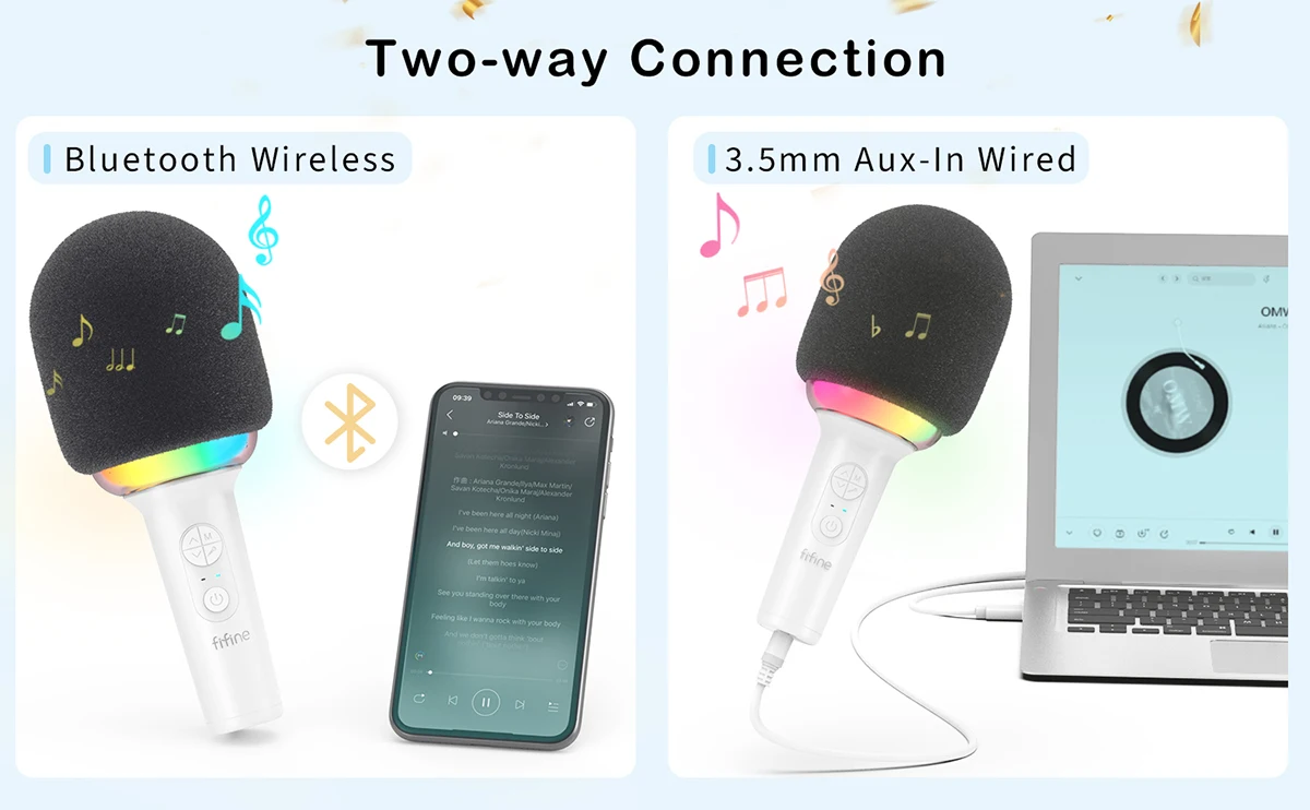FIFINE Karaoke Microphone Wireless Bluetooth-compatible Handheld Mic with Built-in Speaker,Portable Singing Microphone for Party