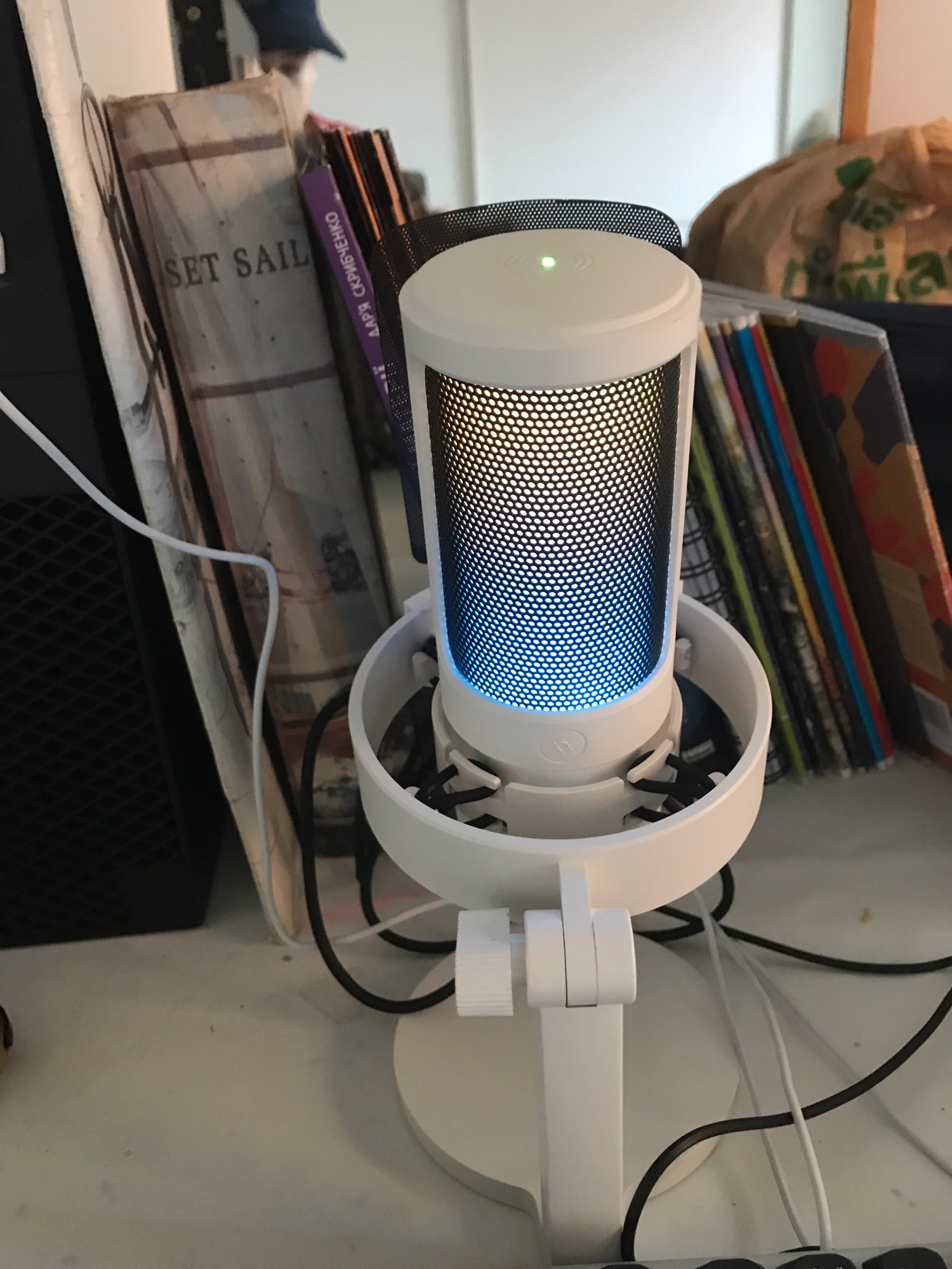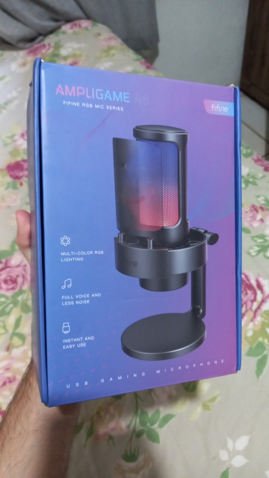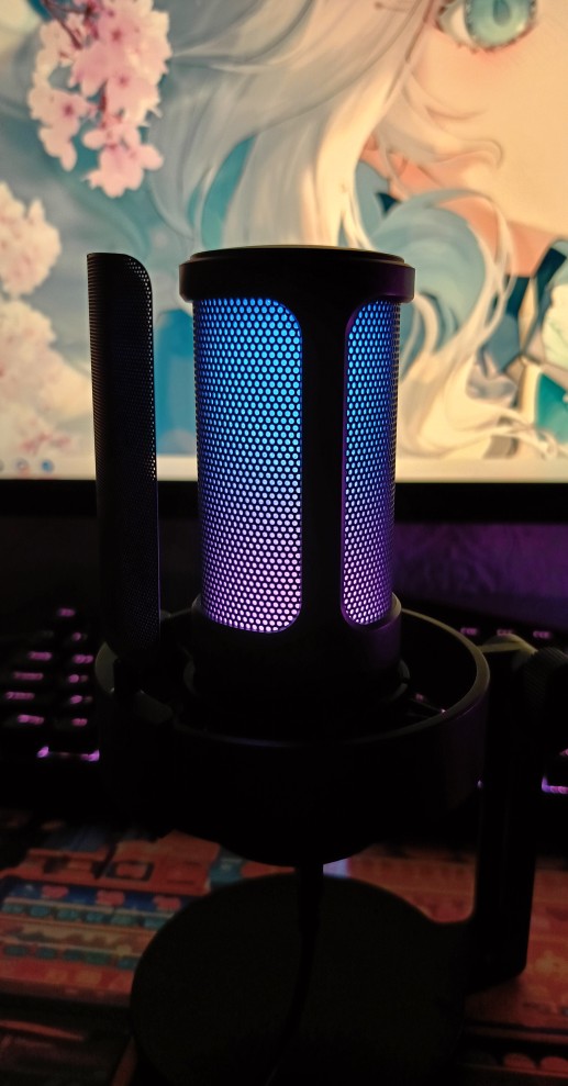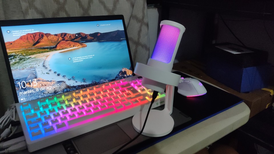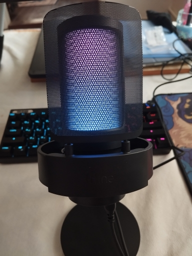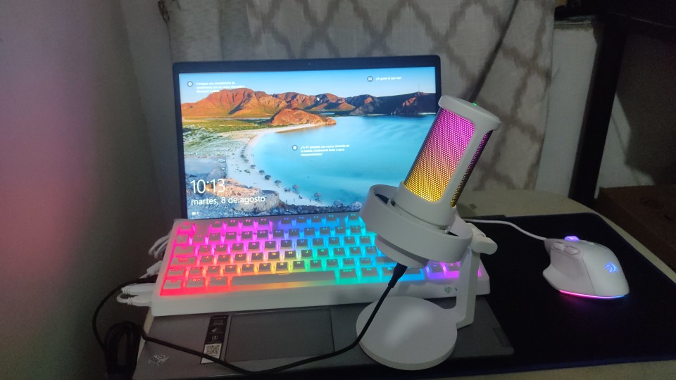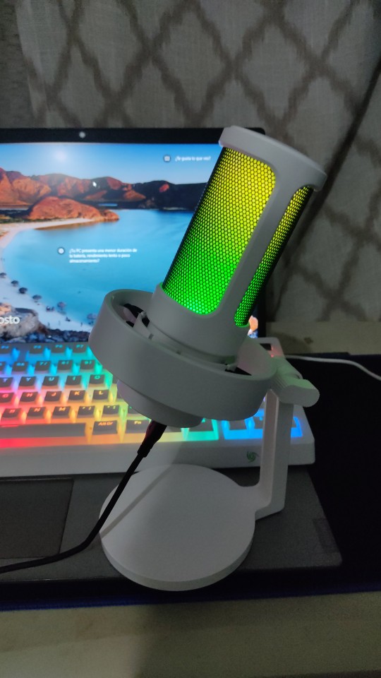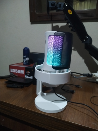 I loved the microphone, it arrived very quickly (approximately in 10 days) and in good condition. I was doing audio tests and he listens perfectly and aesthetically he is not far behind, it looks very good with my setup rgb and white, I only have to buy him an arm so that he does not get in the way