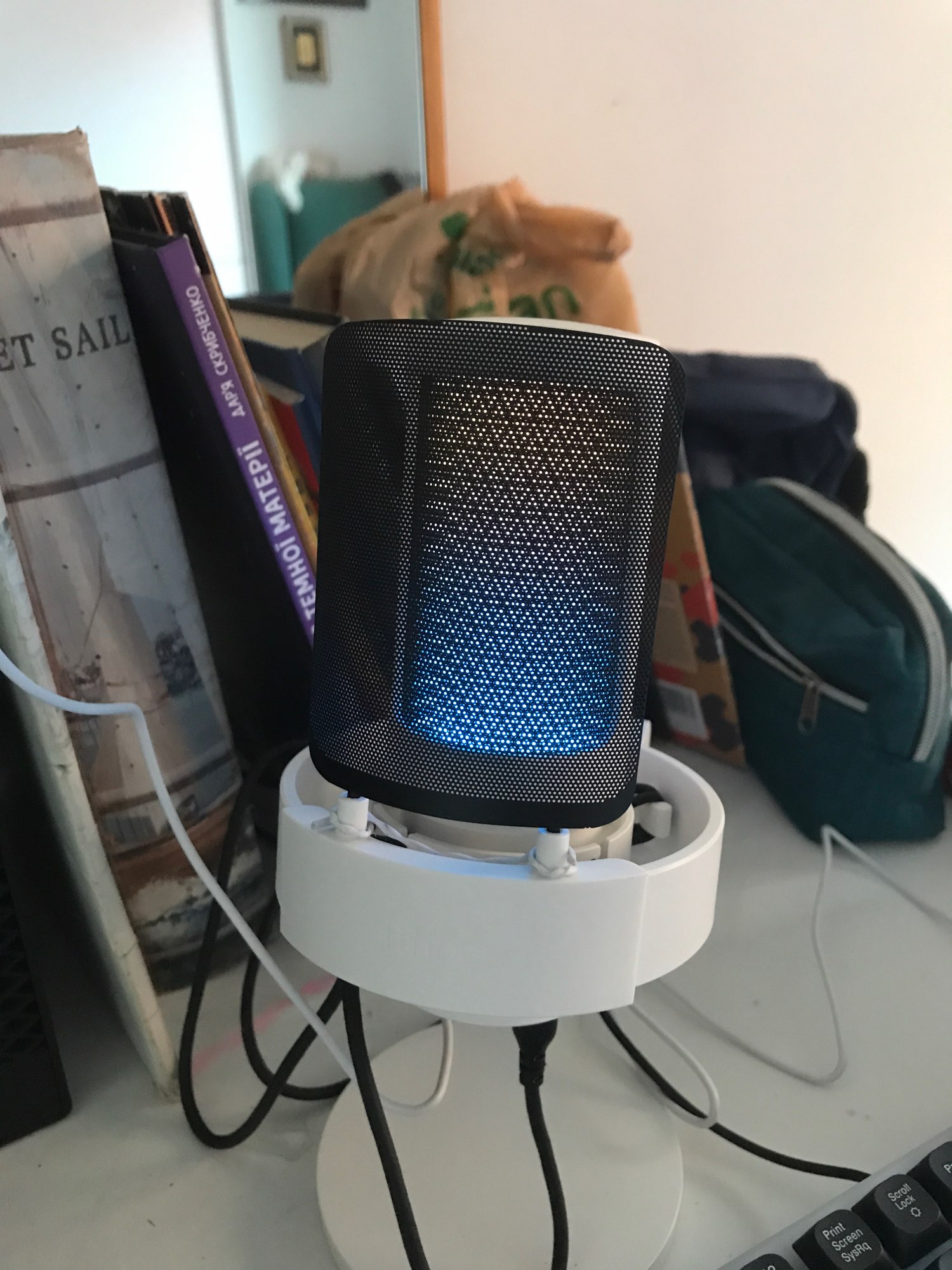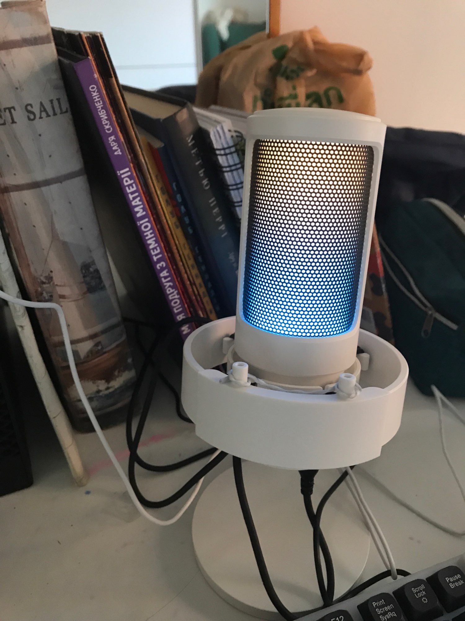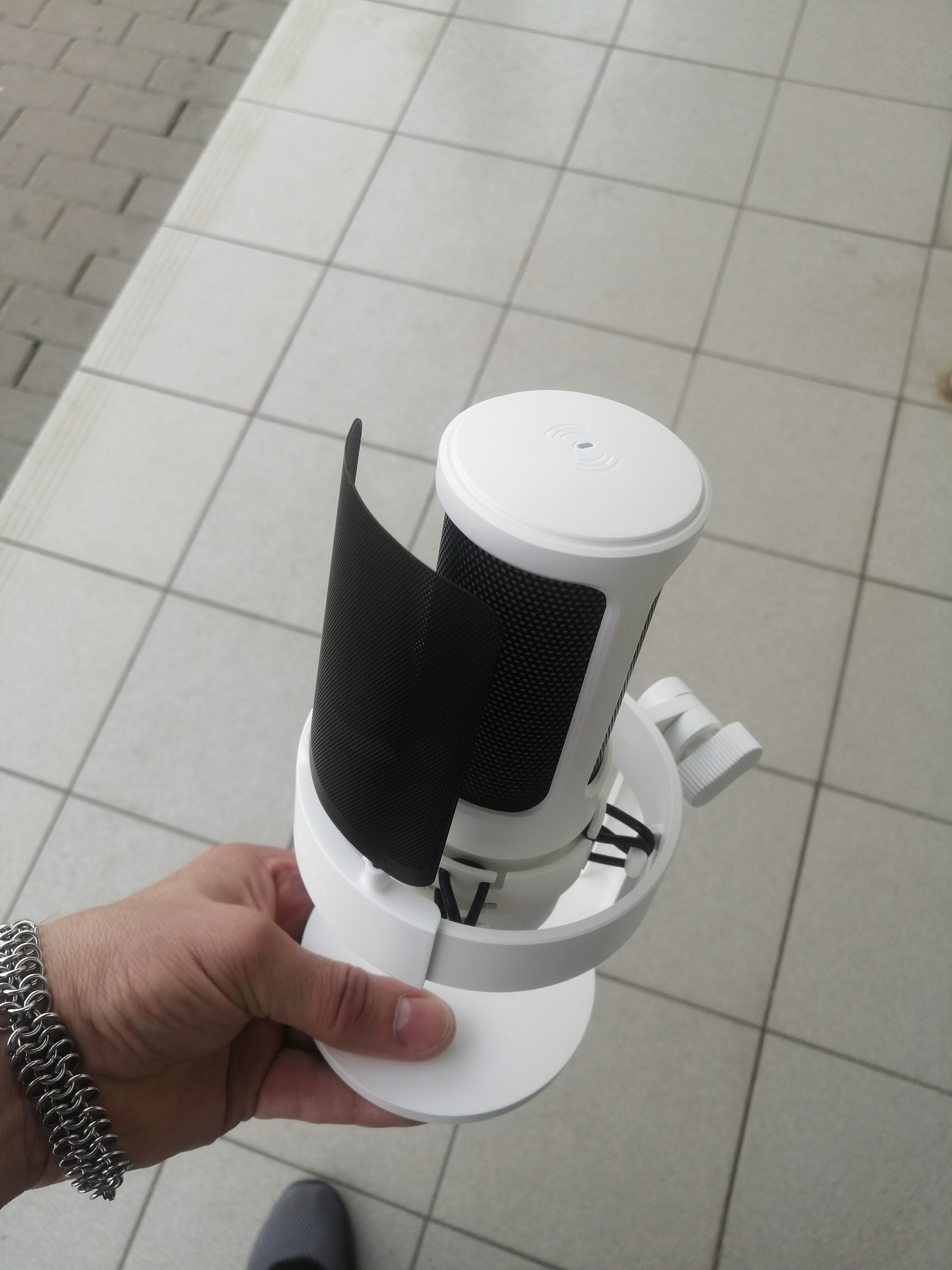 I loved the microphone, it arrived very quickly (approximately in 10 days) and in good condition. I was doing audio tests and he listens perfectly and aesthetically he is not far behind, it looks very good with my setup rgb and white, I only have to buy him an arm so that he does not get in the way